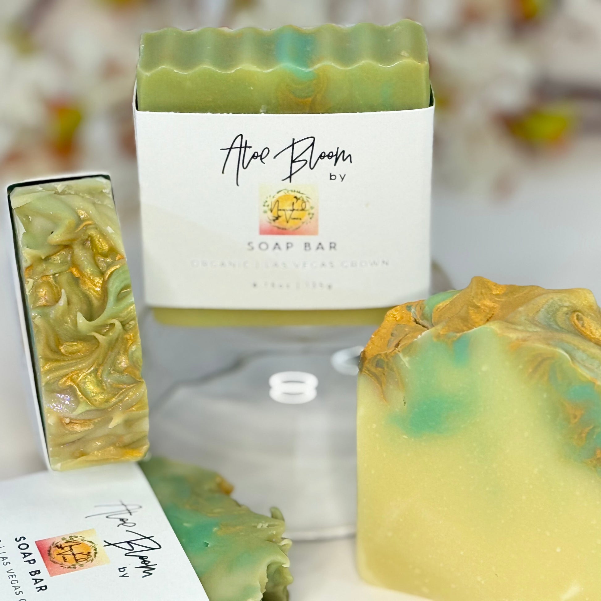 Bring the essence of your garden to your daily routine with our Aloe Bloom Soap Bar, crafted in small batches using garden aloe vera, apple mint-infused olive oil, and calendula-lavender infused grapeseed oil. This thoughtfully made bar offers a soft, creamy lather and a refreshing feel with the clean floral scent of White Lily & Aloe.