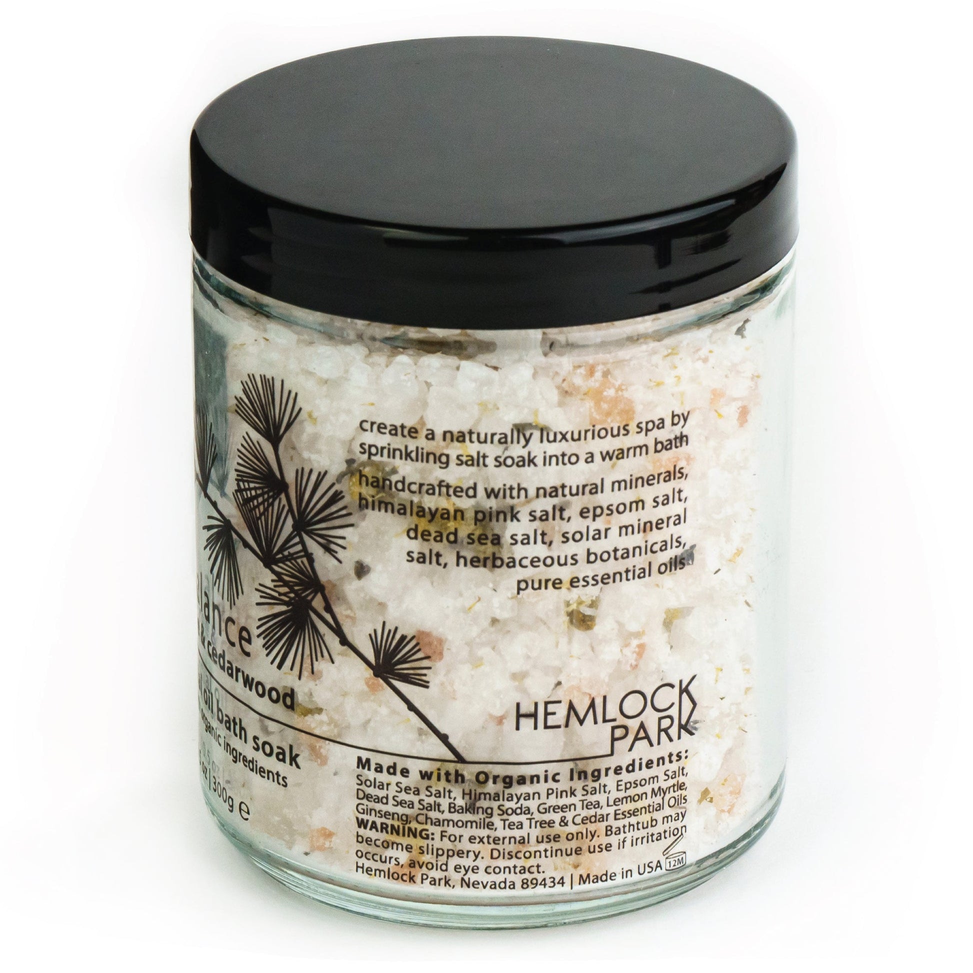 - Each essential oil bath soak is packaged in a beautiful 10.5 oz. glass jar. Paraben-free, sulfate-free, and cruelty-free quality guarantee you'll love the soothing mineral salts and fresh aroma.