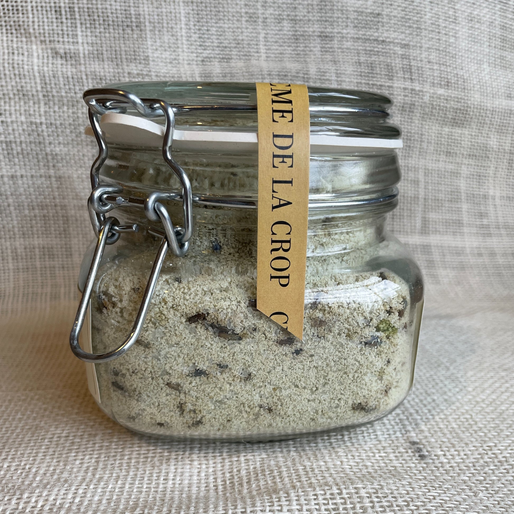 Epsom salts are infused with a delicate lavender fragrance from essential oils, while dried lavender blossoms add an elegant touch to any bath.