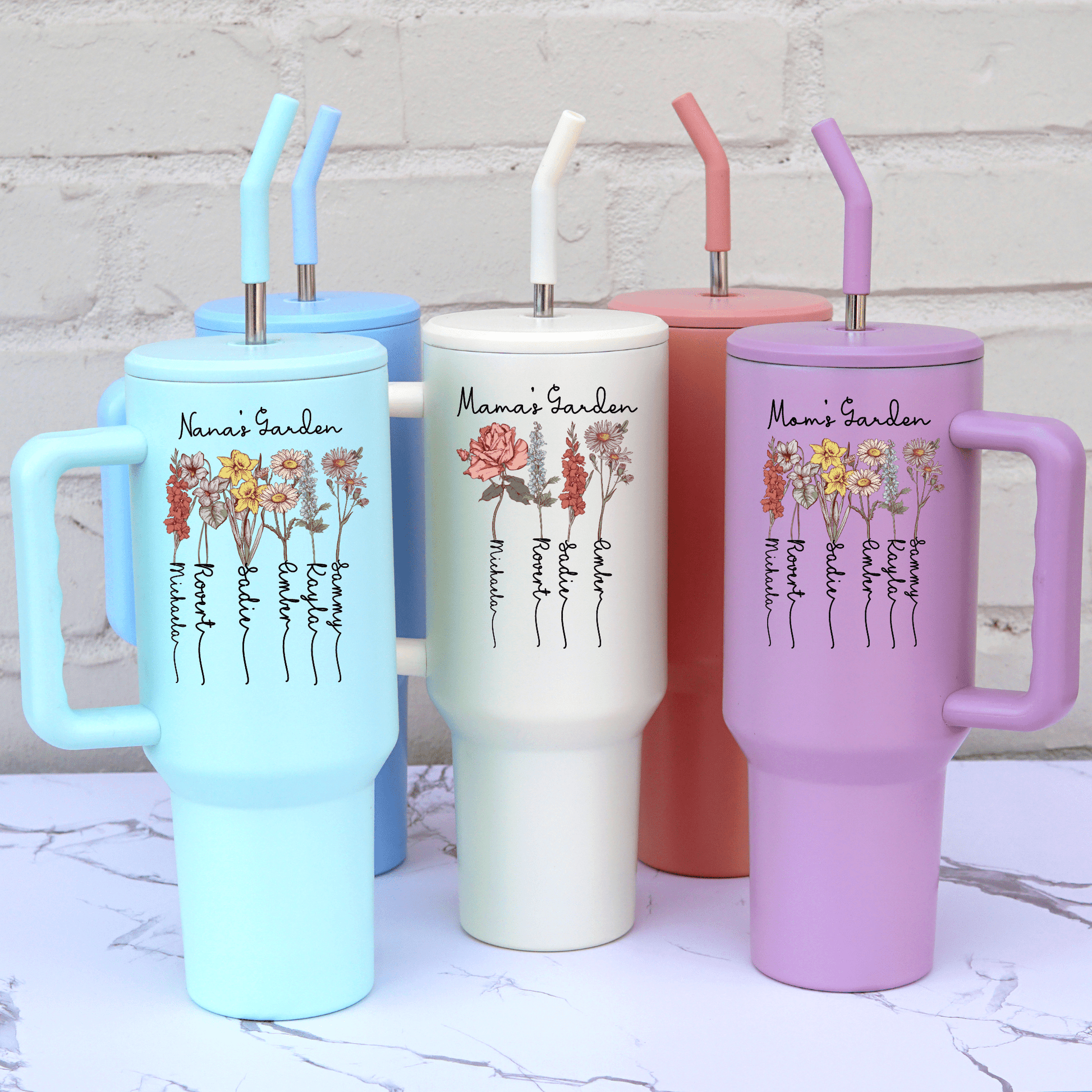 Gift the gift of personalization to that special woman in your life! Our 40oz tumblers are guaranteed to put a smile on their face! The most sentimental gift the recipient will be reminded of their grandchildren or children's love with every sip! UV Printed and in a variety of colors!