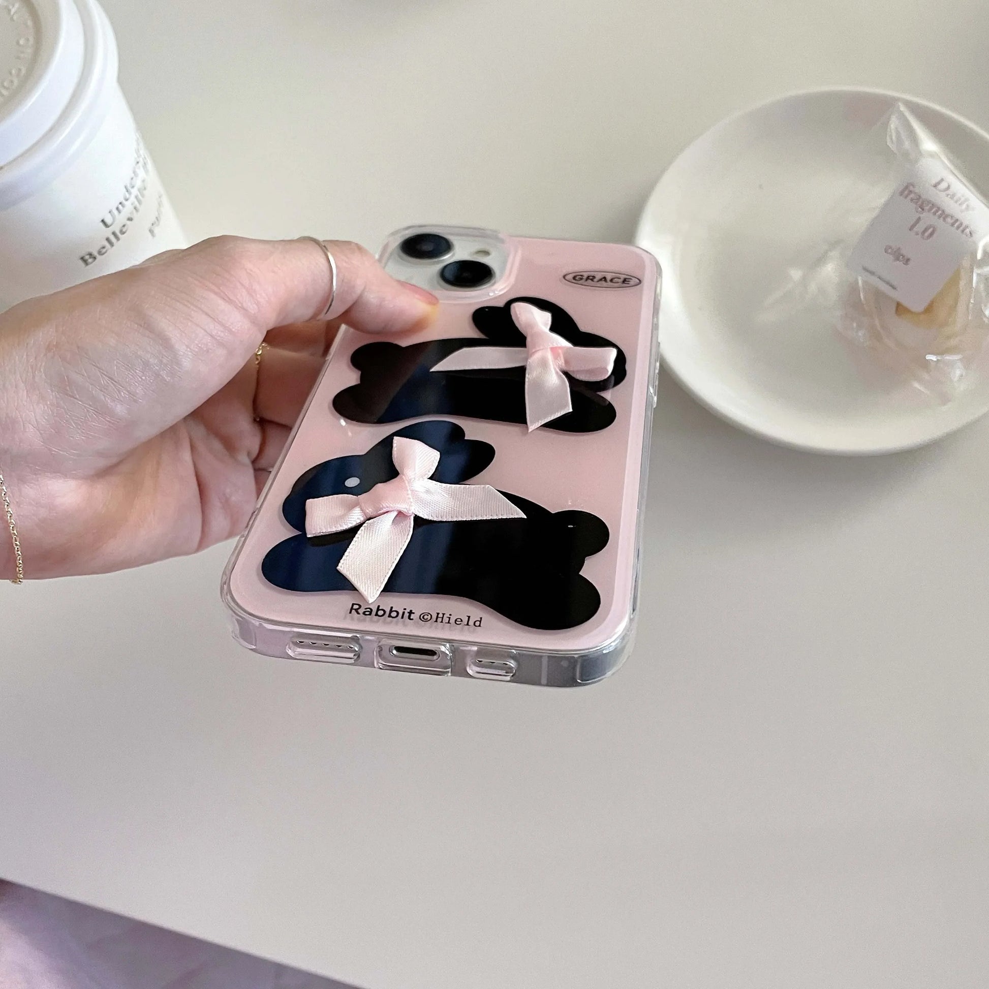 Adorn your phone with the charm of our Black Bunny Pink Bow iPhone Case – a sleek and stylish accessory that merges the elegance of a pink bow and a black bunny silhouette. This kawaii iPhone case isn't just for protection; it's a celebration of adorable aesthetics and the joy of carrying a touch of cuteness wherever you go.