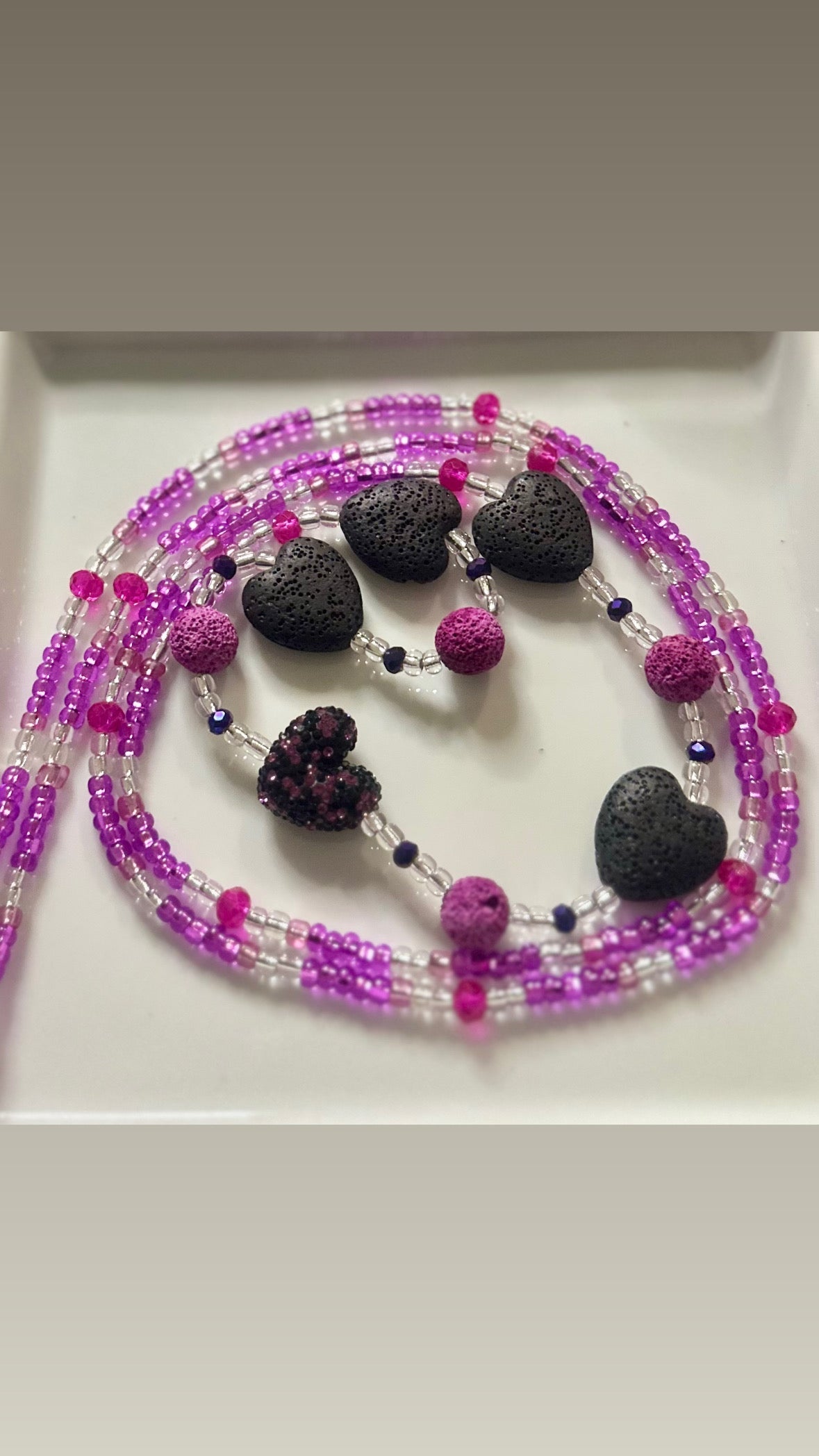 Bold and sultry, the Black Rose Alchemy waistbead set channels sacred romance and the magic of inner transformation. Rich black heart-shaped beads whisper of shadow work and emotional depth, while glimmers of rose pink, lavender, and crystalline accents evoke healing, femininity, and divine softness. The textured pink spheres shimmer like sacred talismans—offering both allure and protection.