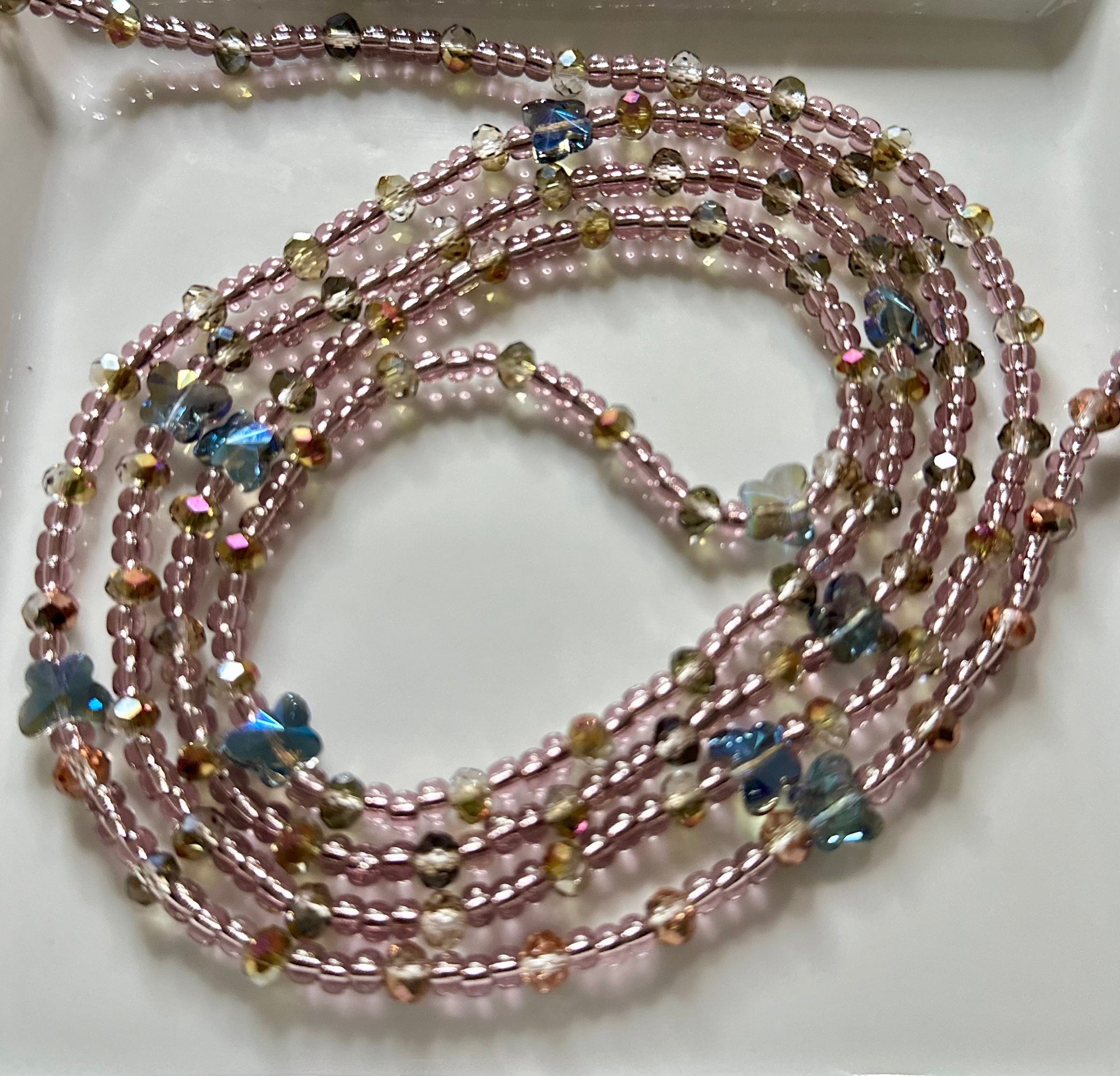 Soft, sweet, and full of fluttery vibes — Butterfly Kisses is all about fun, freedom, and feeling pretty. Shimmery pink beads dance with iridescent butterflies and a touch of sparkle, giving off that carefree, sunshine energy. Perfect for everyday wear or when you just want a little magic around your waist.