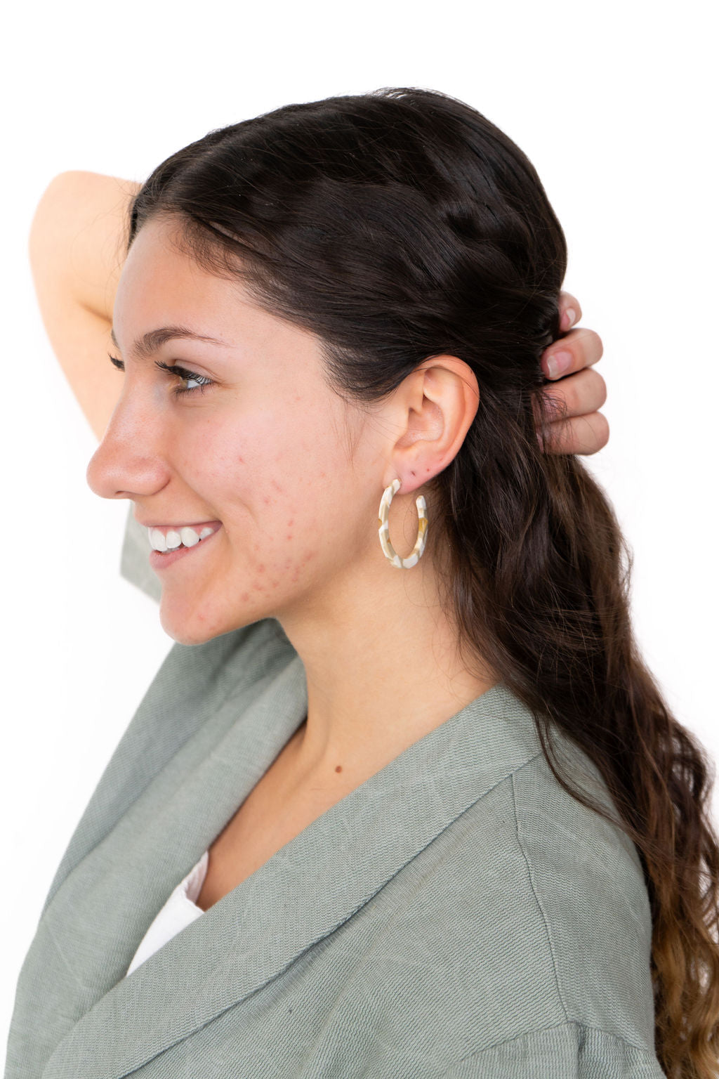 Camy is our medium sized hoop. Our signature ultra lightweight acrylics in gorgeous colors make them the perfect go-to wardrobe staple.