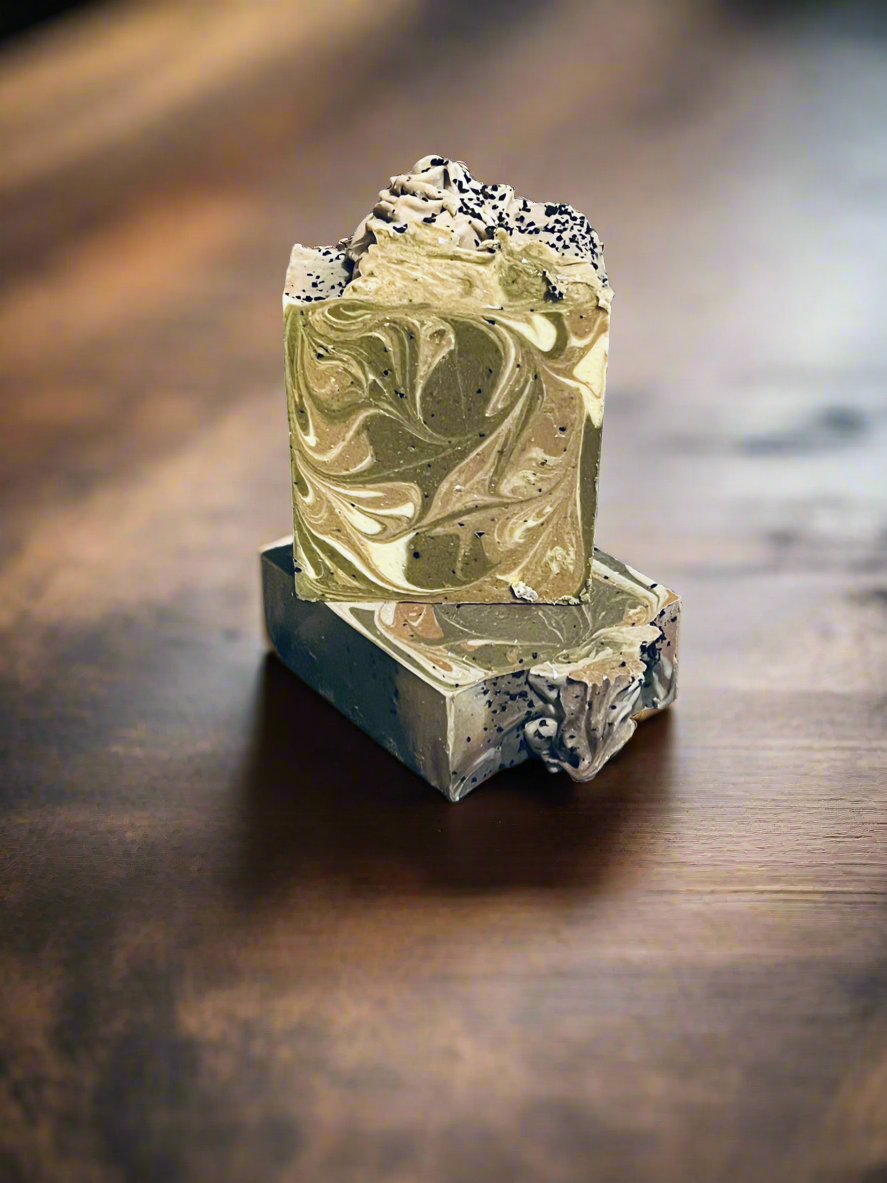 Discover the intricate aromas of dark chocolate, coconut, almond, honey, caramel, roasted coffee beans, and burnt sugar in our Dark Roast goat milk soap . As a final touch, we've included coffee grounds to provide a gentle exfoliation. Experience the indulgence of a freshly brewed cup of coffee with every use.