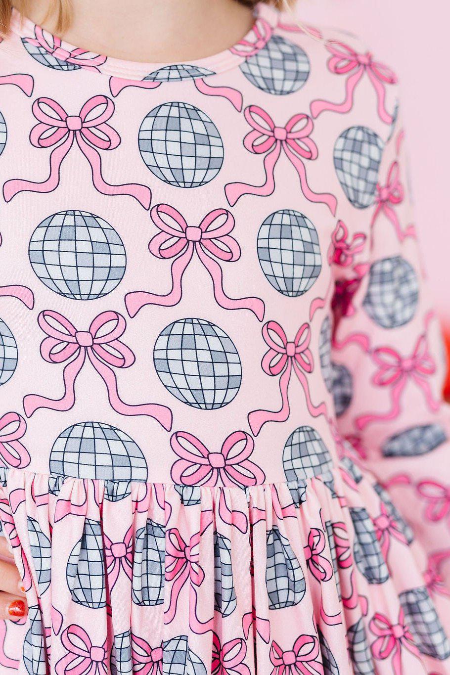 Disco Bows 3/4 Sleeve Pocket Twirl Dress