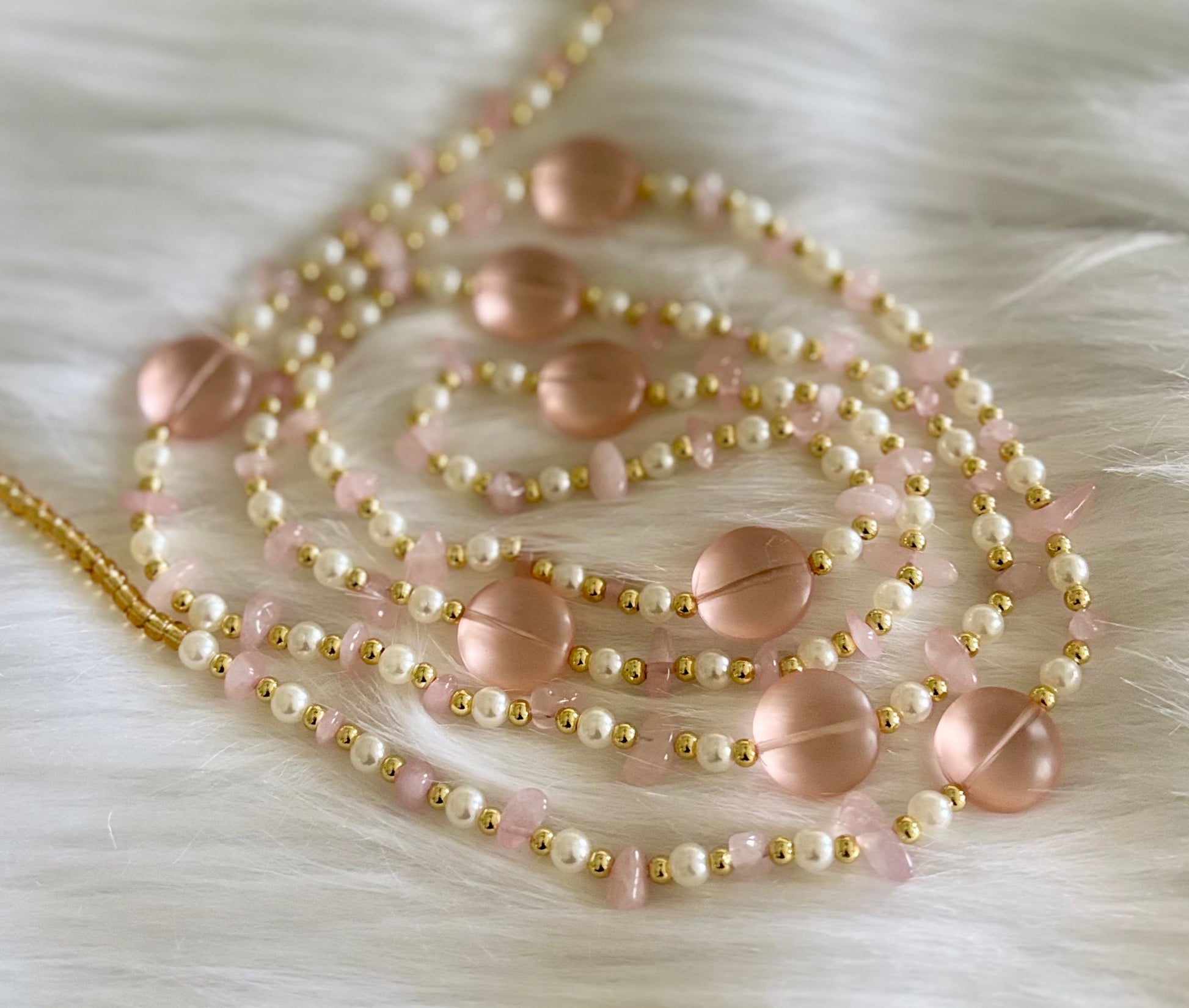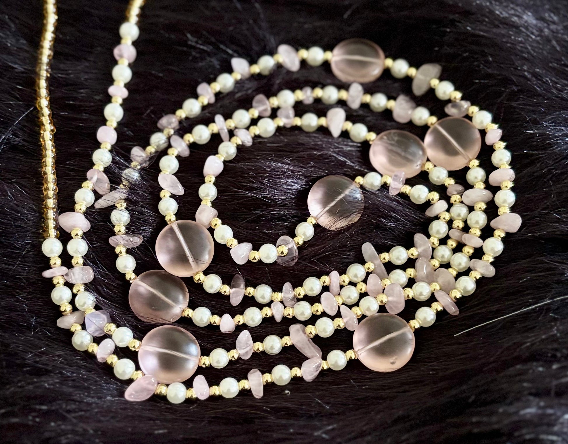 Rose quartz for love and emotional healing. Pearls for wisdom earned and elegance embodied. And gold—pure solar energy, confidence, and clarity.