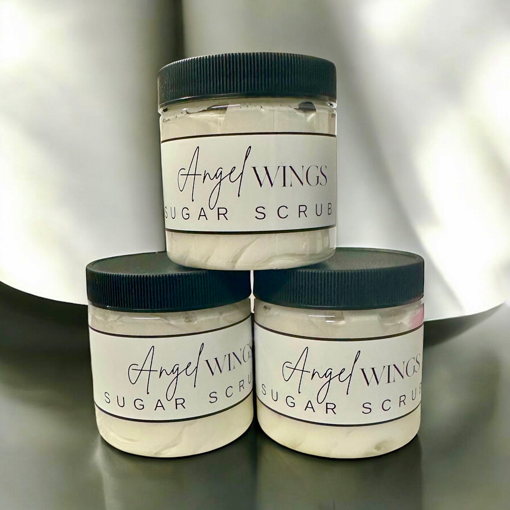 Indulge in the ultimate pampering experience with the Angel Wings Sugar Scrub. A heavenly blend of citrus and eucalyptus, accompanied by delicate notes of muguet, rose, and mimosa. Relax with the lingering scents of amber, cedarwood, and musk. A true treat for your skin and soul!