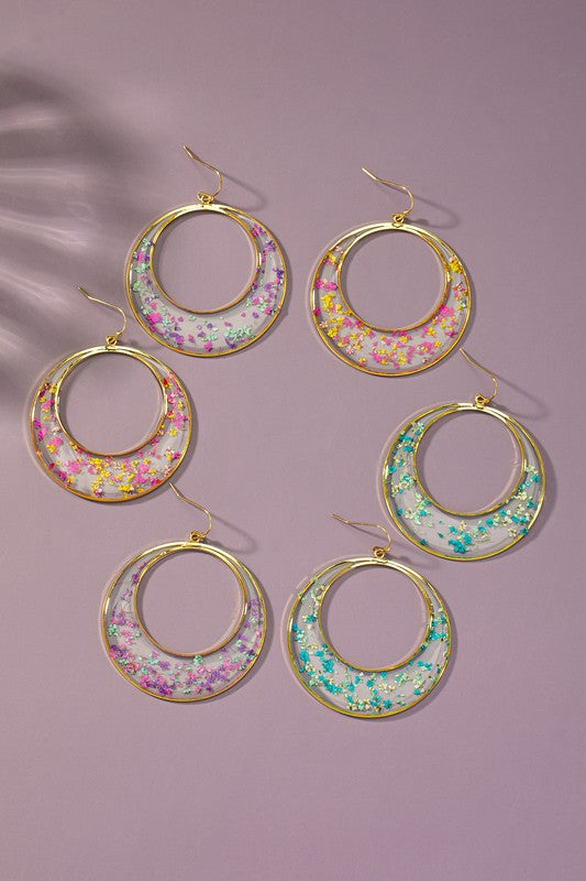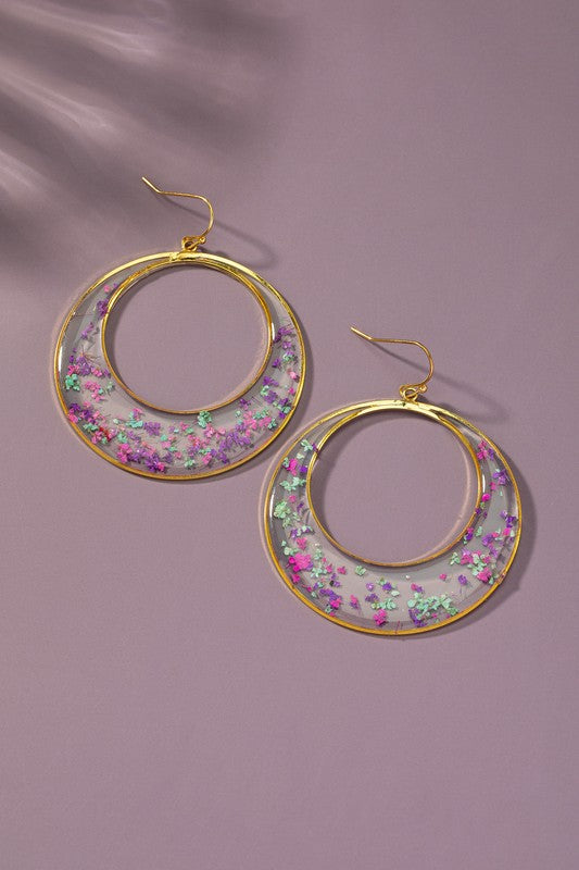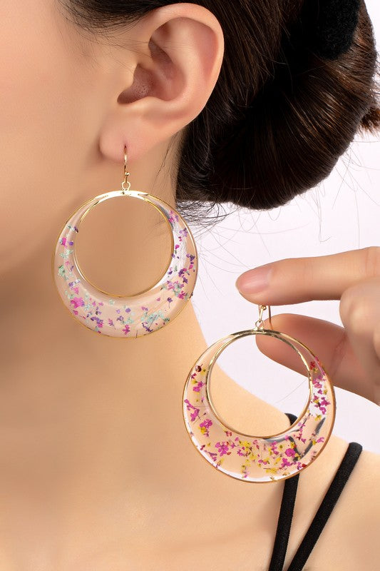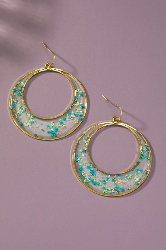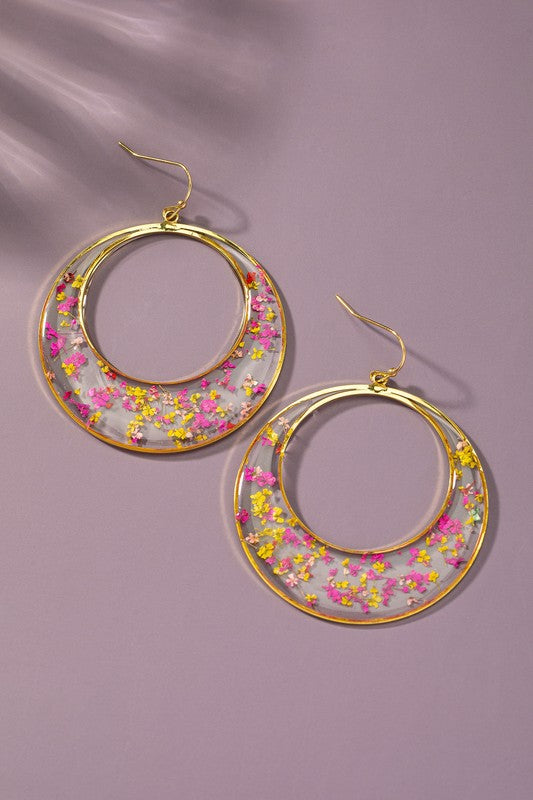 Dried flower resin hoop earrings