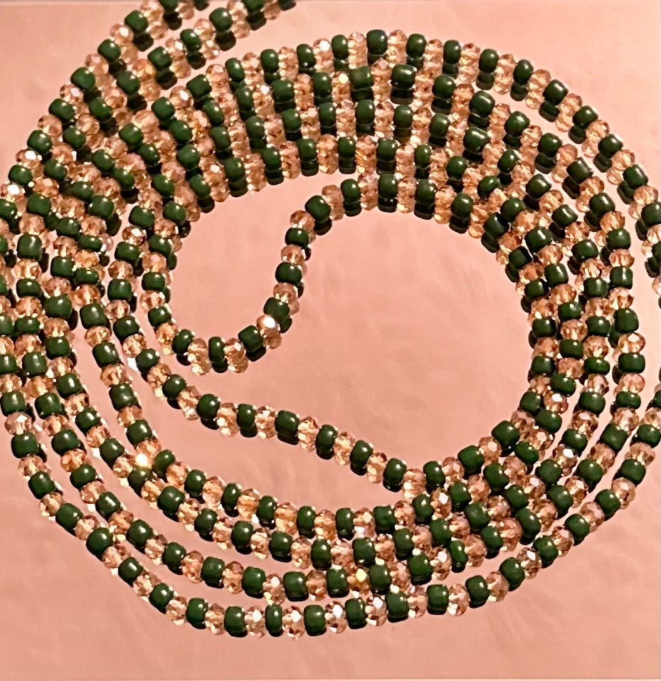 Emerald Green and gold waistbeads. Traditional tie on or clasp option available.