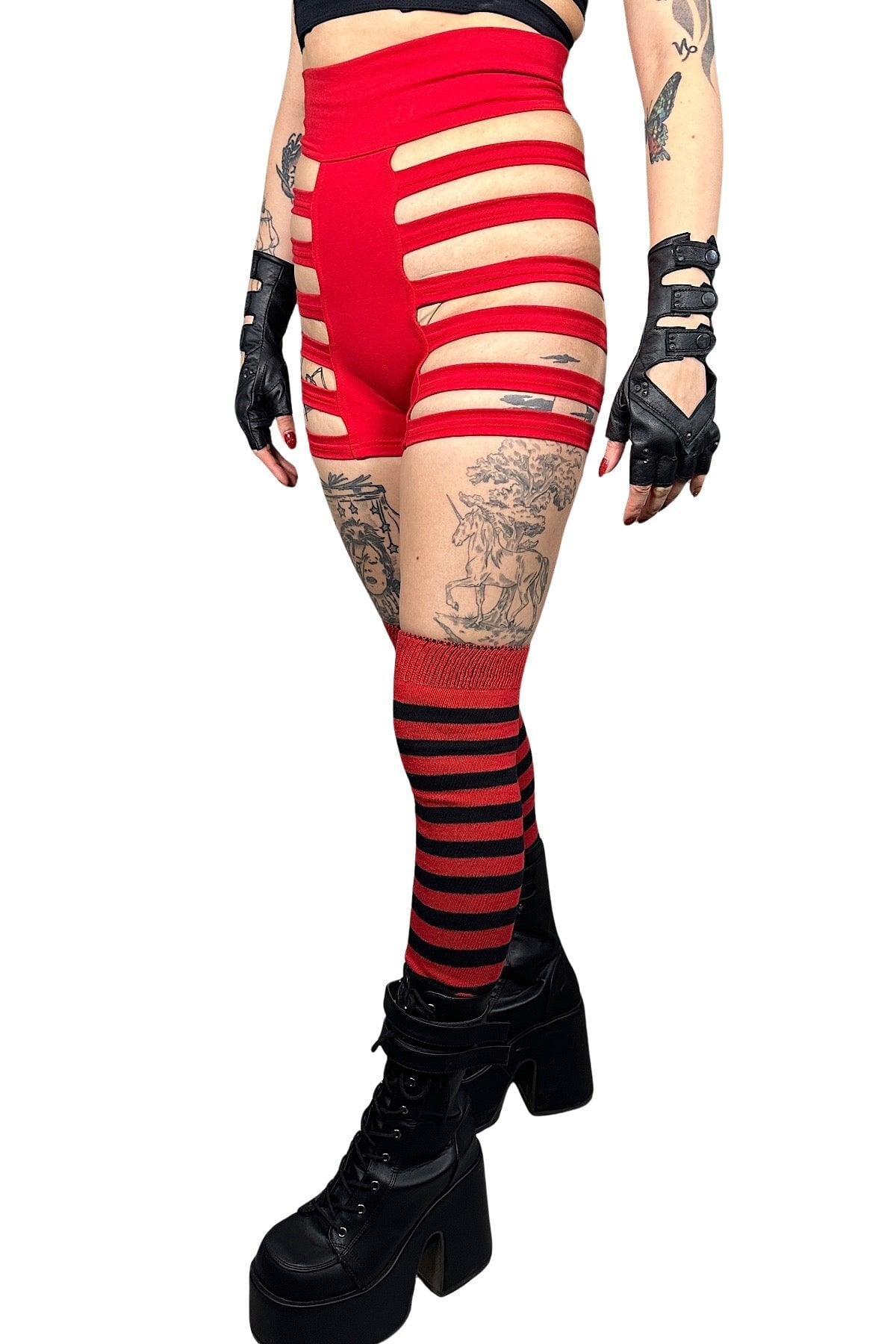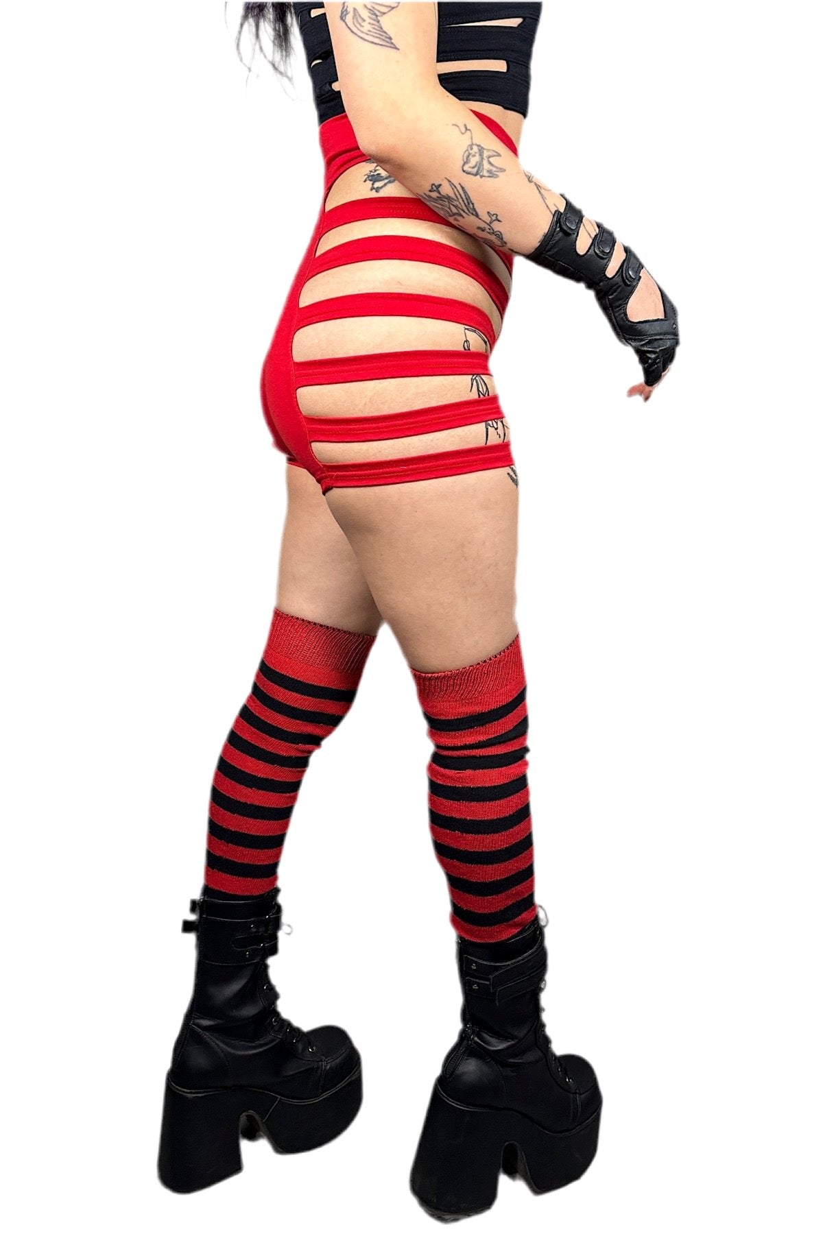 The Peek-a-boo ladder effect down the sides of the Delila Shorts makes them a stand out design while still offering great coverage with the high waist and boy short cut.