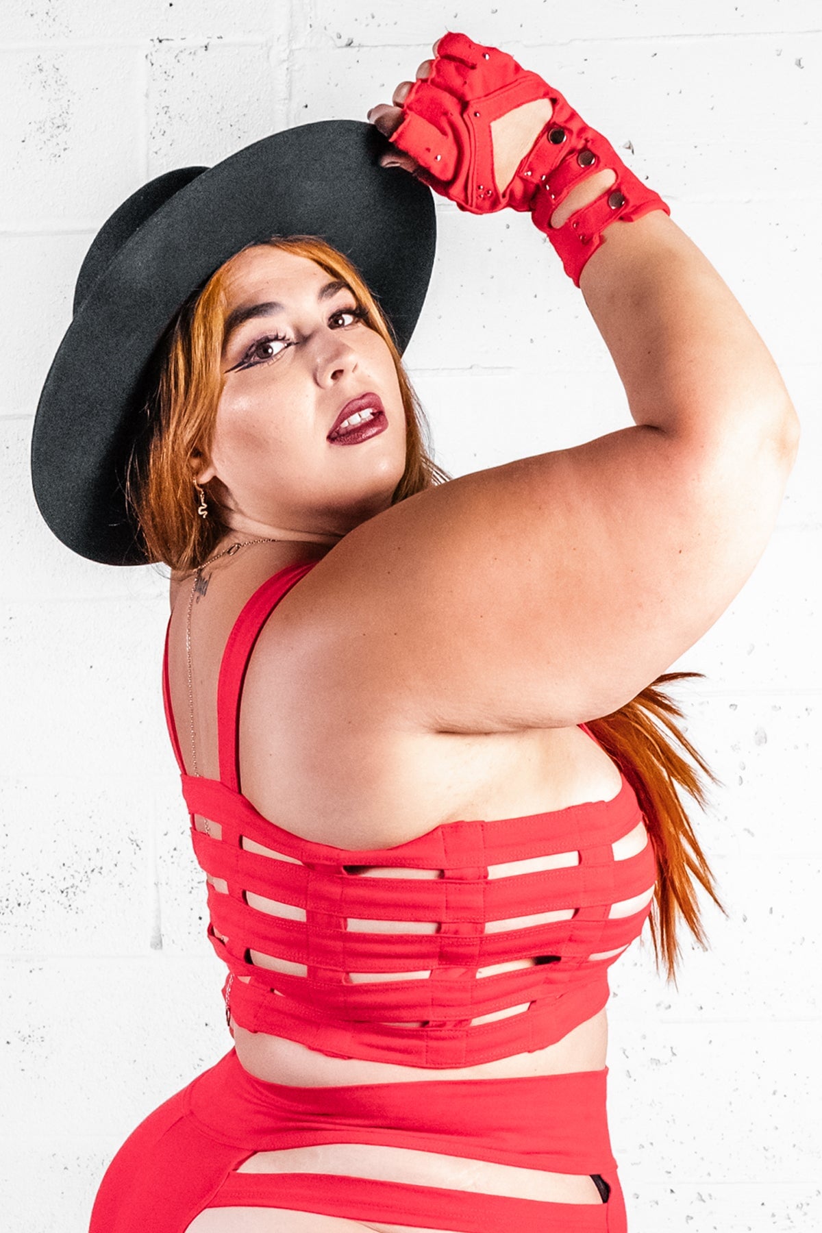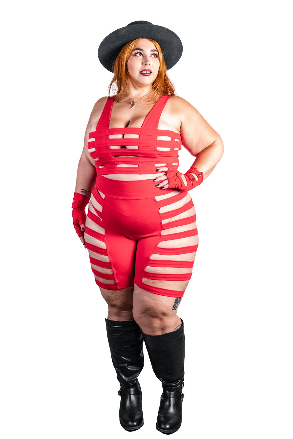 This cage bra is surprisingly strong and offers ample coverage. The Deluxe version has 6 additional vertical straps added (total of 10) for support. It's made from a thick Cotton Lycra that holds very well. Wear it alone at a festival or pool party, or layer it with other items for a dramatic effect. Especially great under low cut tanks and dresses. These are made one at a time with each strap hand placed.