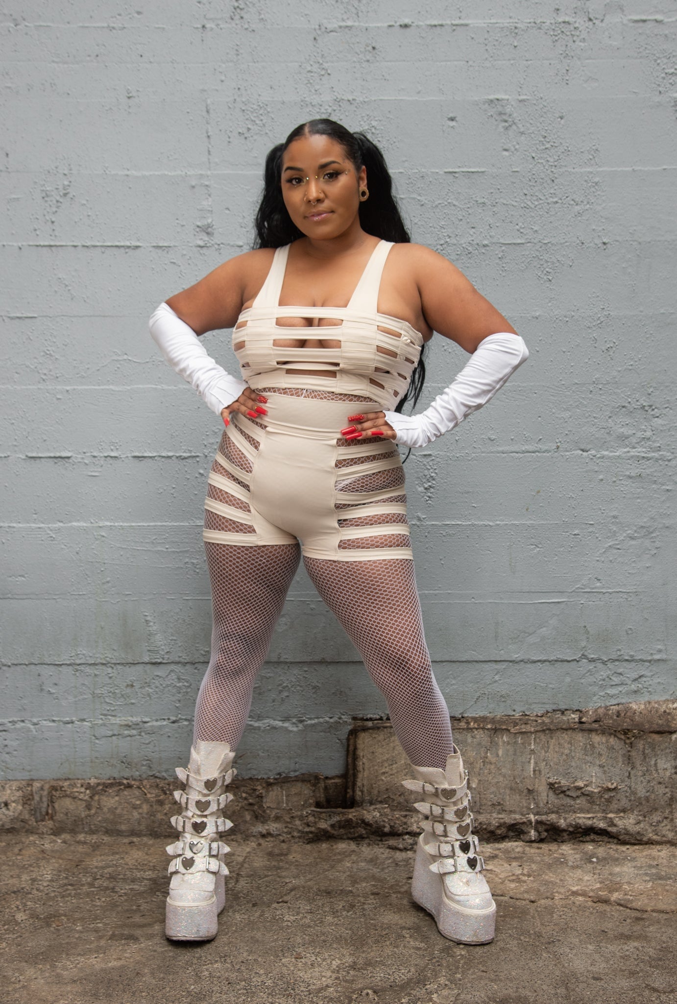 Five and Diamond's Deluxe Cage Bra is surprisingly strong and offers ample coverage. Made from a thick swim nylon, this Deluxe version has 6 additional vertical straps added (total of 10) for extra support. Wear it at a festival or pool party, or layer it with other items for a dramatic effect. This bra looks especially great under low cut tanks and dresses. Made one at a time with each strap hand placed.