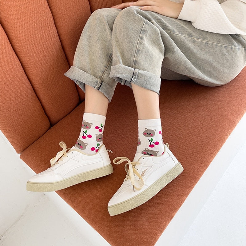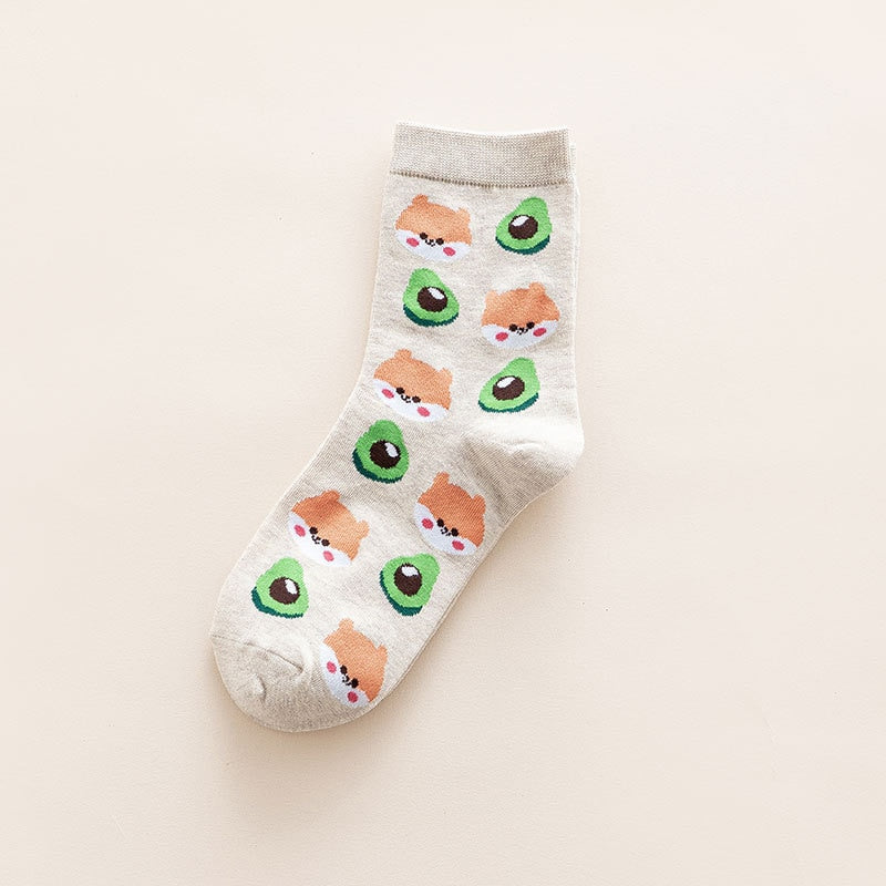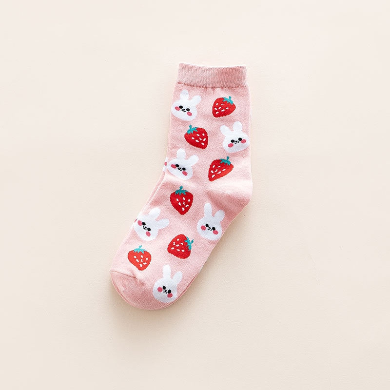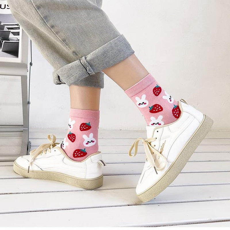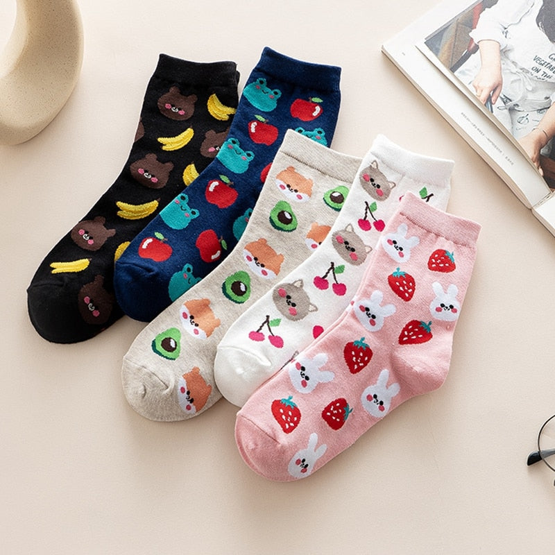 Add a touch of playful charm to your outfit with our Kawaii Fruit and Animal Socks! These adorable socks feature a charming design of various fruits and animals, available in five playful styles: bunnies and strawberries, shiba inus and avocados, bears and bananas, cats and cherries, or frost and apples. The socks are made from high-quality and breathable materials, ensuring your feet stay comfortable and cool all day long, and the playful kawaii design adds a fun touch to your outfit. The socks are perfect for wearing with sneakers or sandals, making them a versatile accessory for any occasion. So, why settle for boring socks when you can have a playful and charming pair? Order your Kawaii Fruit and Animal Socks today and start enjoying the fun and adorable support of these charming accessories!