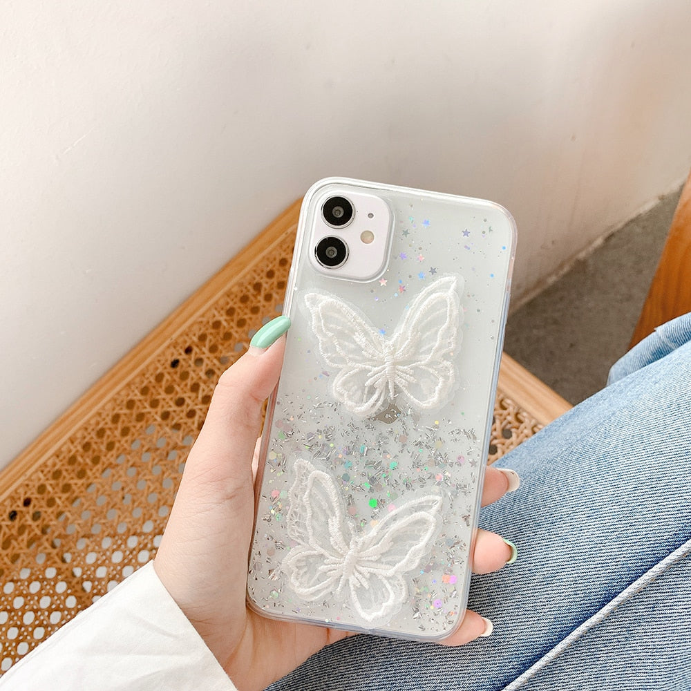 This kawaii Glitter Star Butterfly iPhone Case is a stunning phone case that combines shimmering glitter with a playful butterfly design. This case is not only stylish, but also protective, as it is made of a durable material that will protect your phone from scratches, dings, and drops. With its slim and lightweight design, it will fit perfectly in your pocket or purse. Upgrade your phone's look with the Glitter Star Butterfly iPhone Case and enjoy the perfect combination of fashion and function!