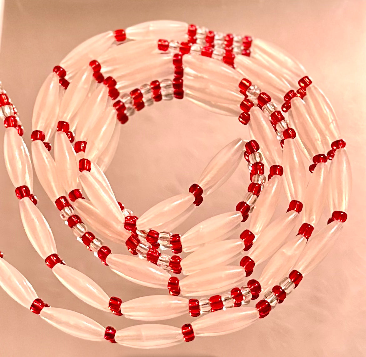 Red and Silver with glow in the dark barrels. Traditional tie or clasp available.