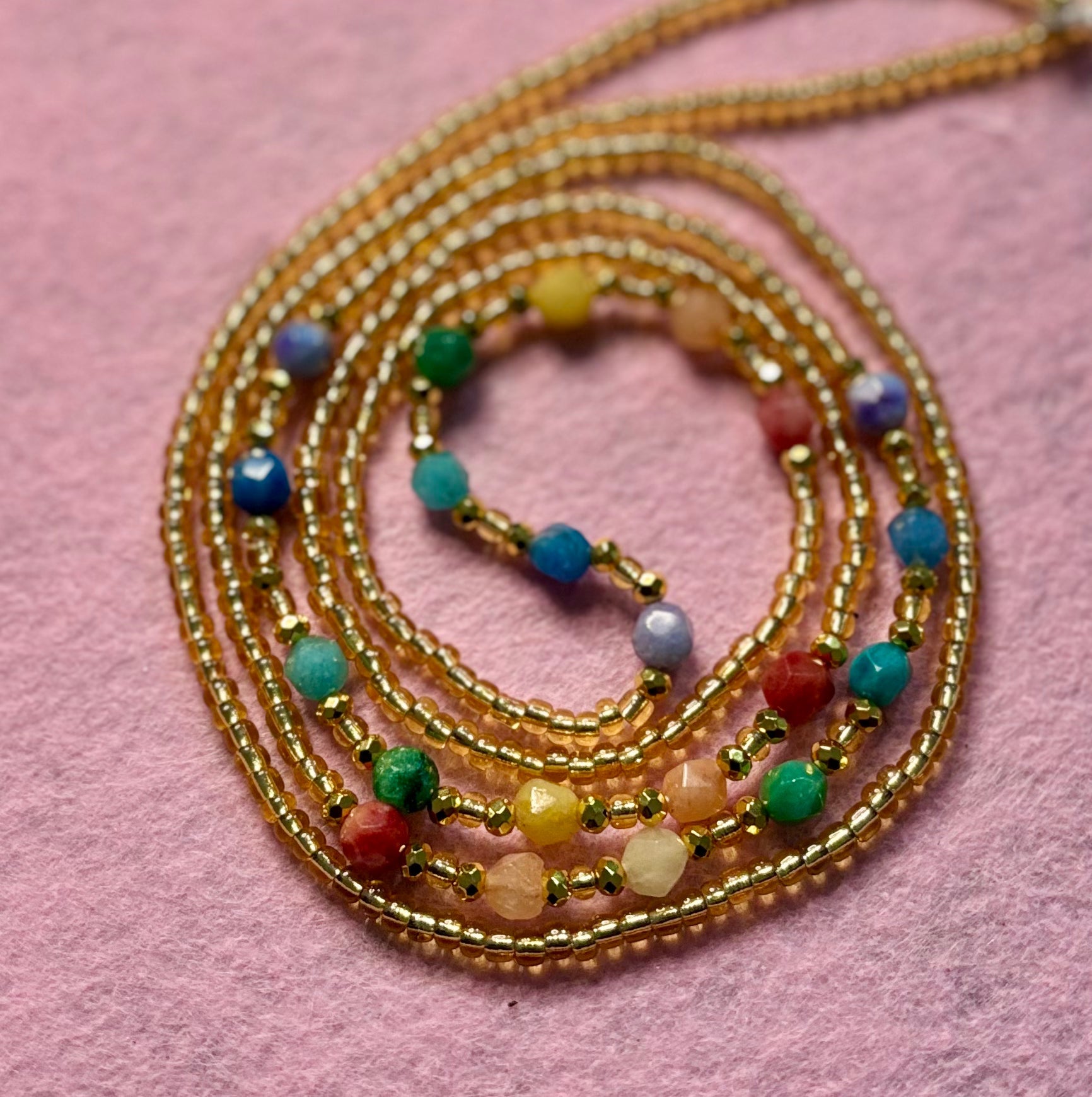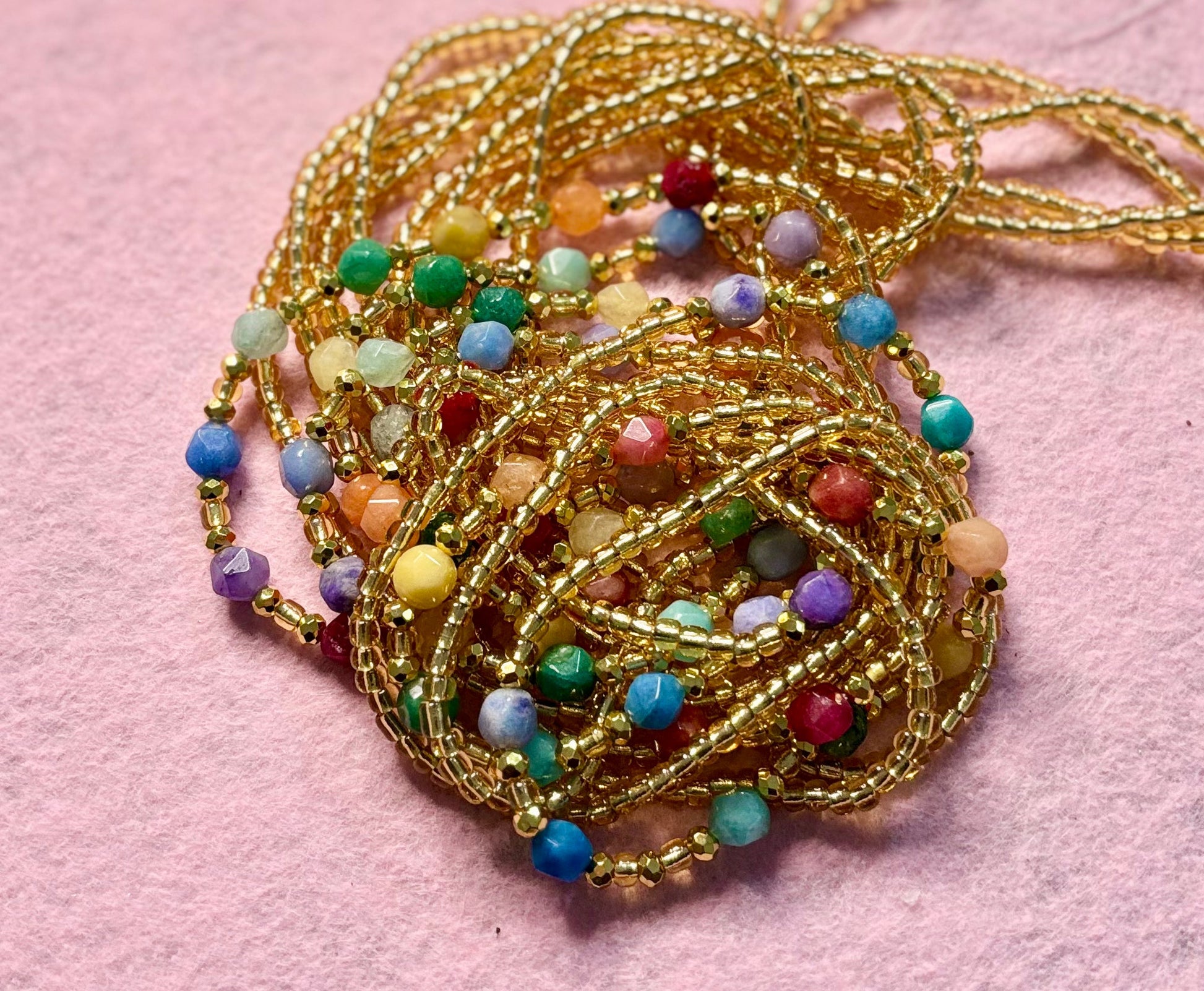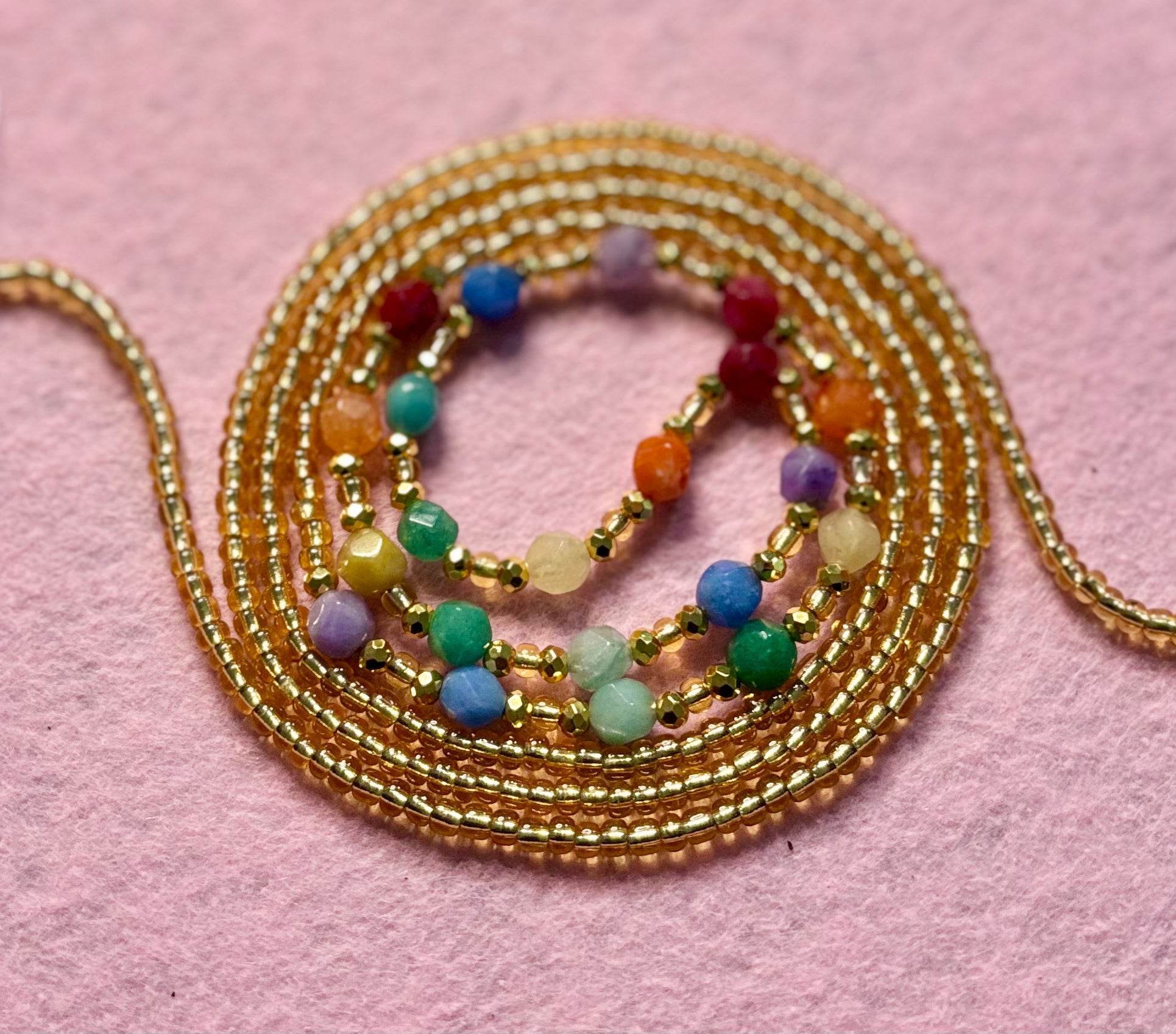 Radiating warmth, confidence, and inner balance — Golden Alignment waistbeads fuse the glow of gold with the vibrational energy of chakra stones.