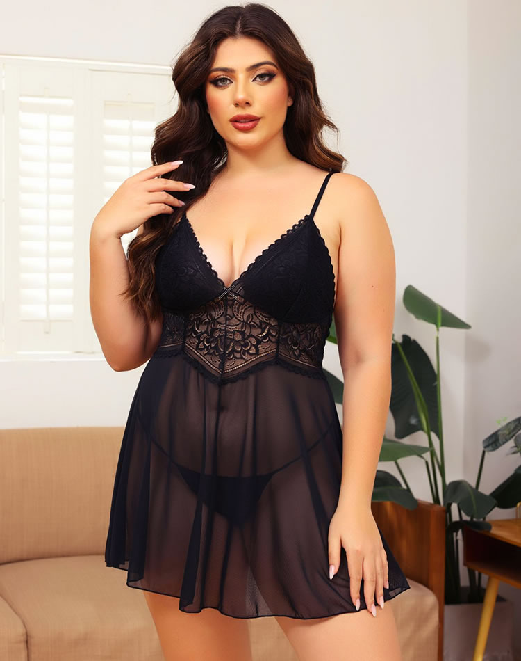 Sexy Lingerie Dress Lace Babydoll Lingerie V-Neck Strap Nightdress