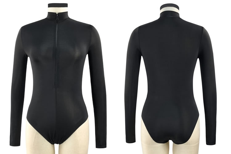 Black Long Sleeve Zip One-Piece Swimsuit
