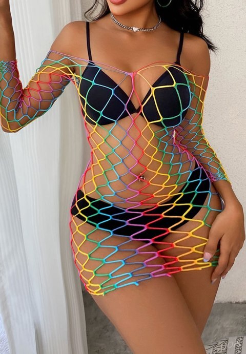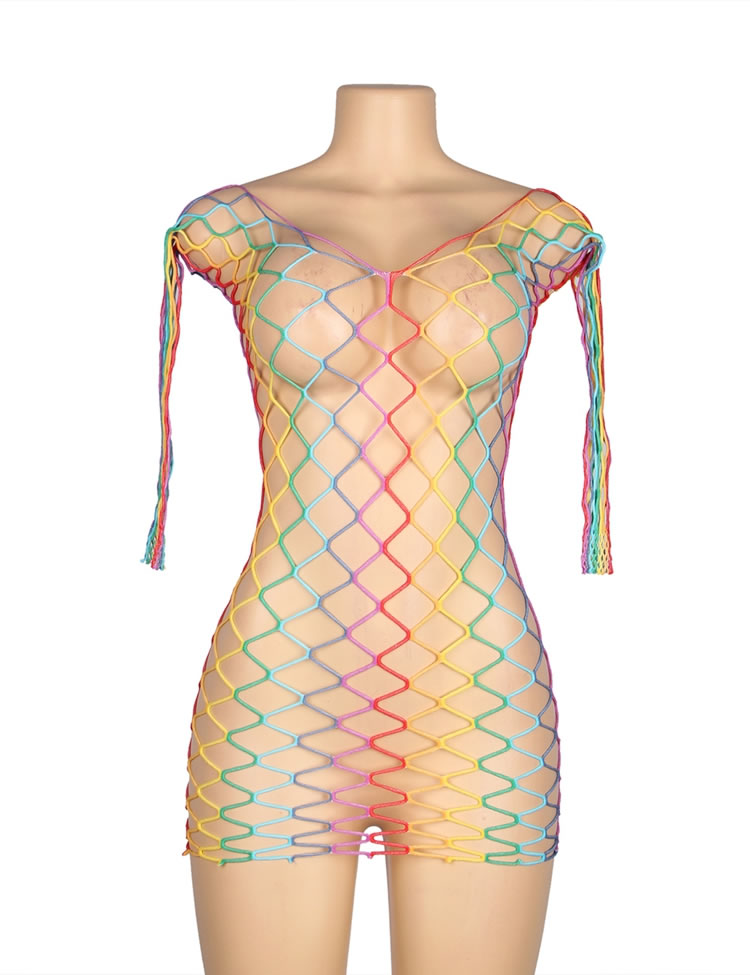Rainbow Colorful Long Sleeve Fishnet Bodystocking