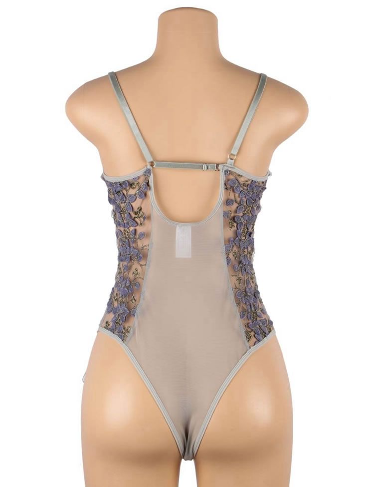 Seduce your sweetie in this sexy sheer mesh plus size teddy featuring sheer underwire cups with appliques, adjustable spaghetti straps, a sheer mesh bodice with delicate appliques, a back keyhole, ultra high cut sides, and a cheeky cut back.