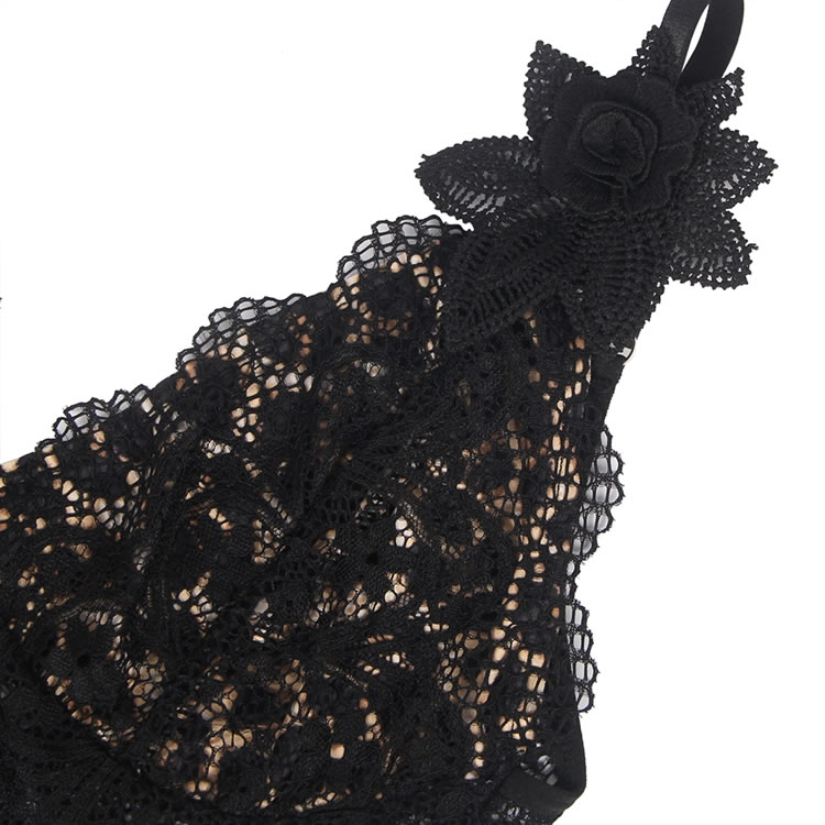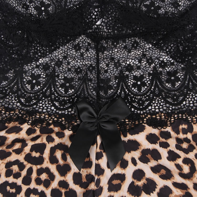 V Neck Leopard Print Lace Stitching Strap with Flower Babydoll