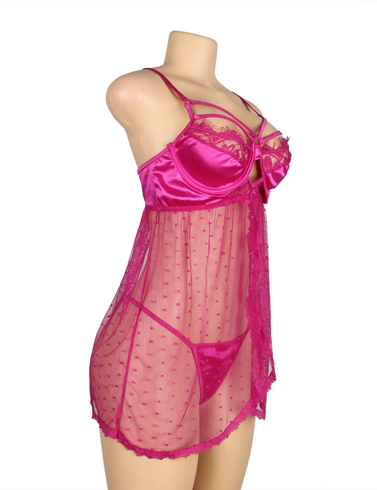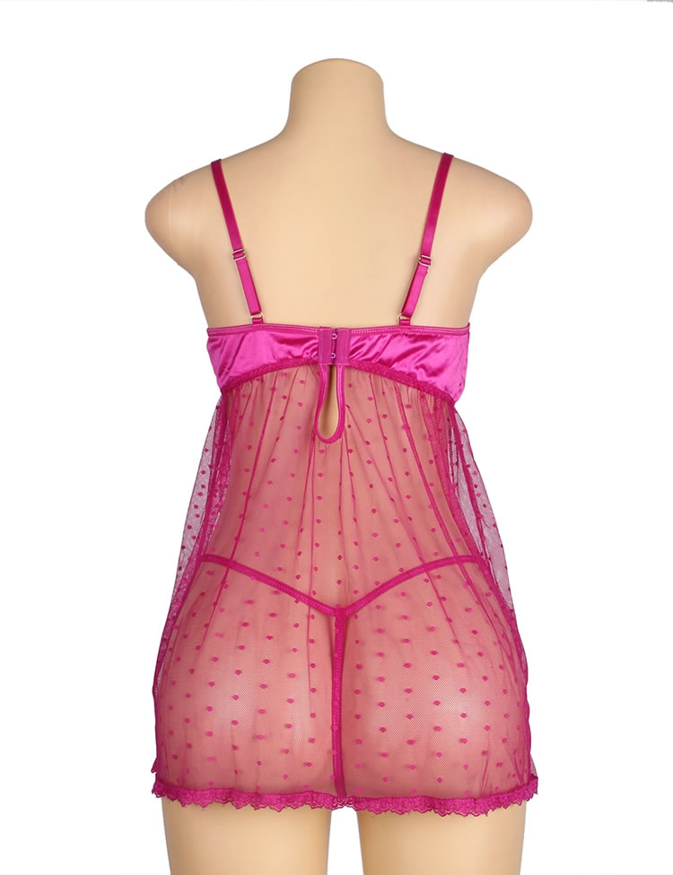Purple Open Front Dot Patterns Comfortable Mesh Babydoll