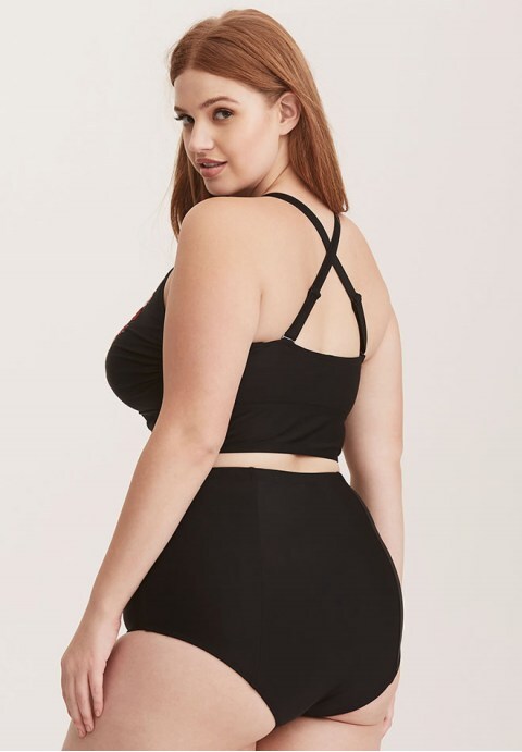 Feel supported in a style that's perfect for beach and pool party with this two piece bathing suits. This plus size swimwear is made out of nylon and spandex, the bikini top with cups padding and floral print, v neck with ladder strappy front, adjustable and convertible shoulder straps, to complete this bikini set with a matching high waist bikini bottom with flower print front and full coverage back.