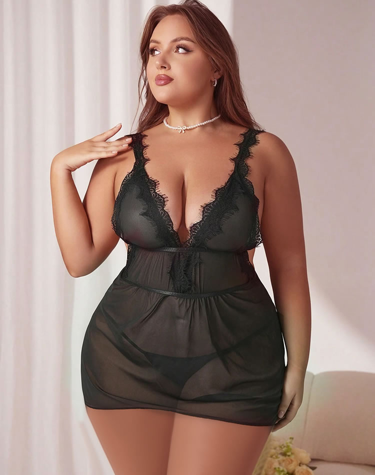 Delight your partner with this playful babydoll set, featuring sheer mesh cups, supportive thick shoulder straps, and a mesh underbust for added allure. The hook back closure ensures a comfortable fit, while the matching G-string completes this flirty and seductive look. Perfect for a surprise they'll love!
