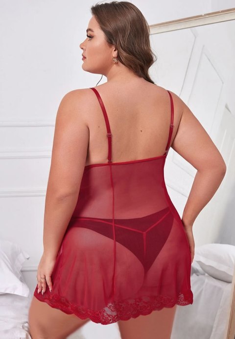 Flirt it up in this sassy babydoll set featuring sheer lace triangle cups, adjustable spaghetti straps, a sheer bodice with a lace hem, and a matching g-string panty.