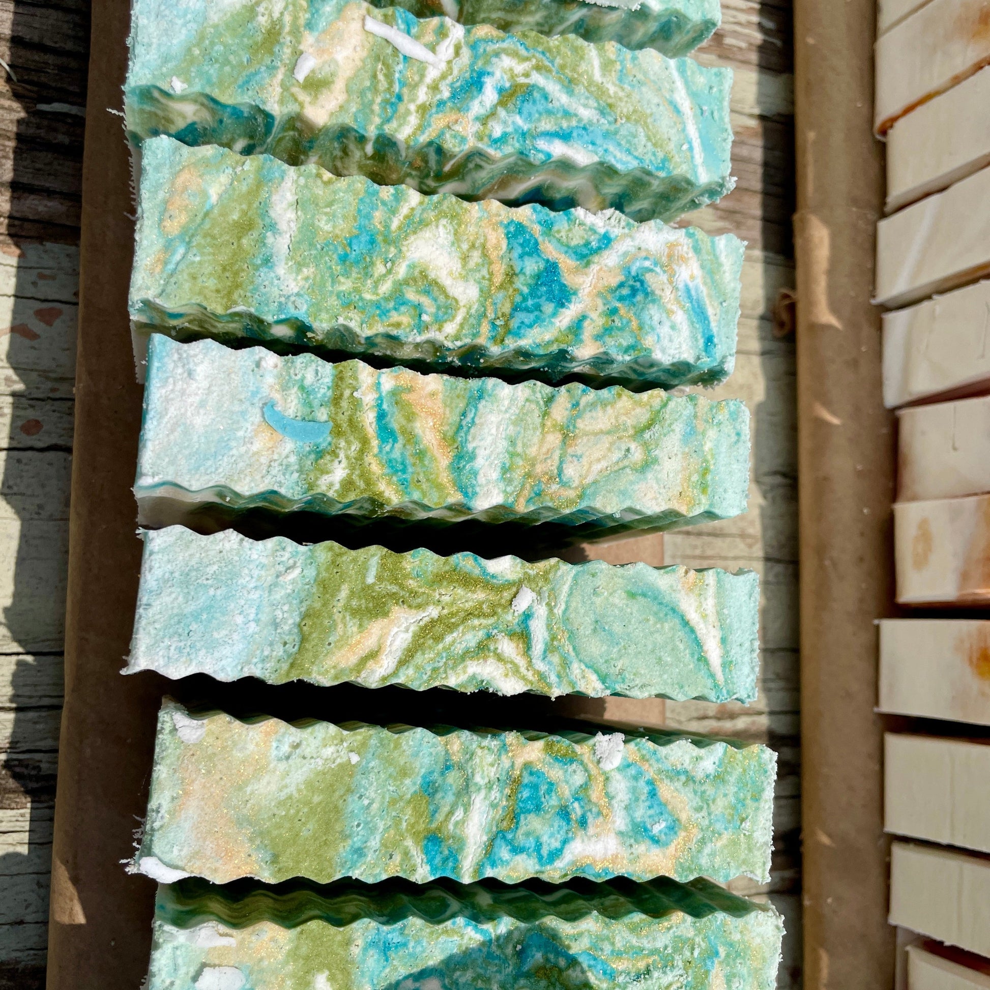 Ingredients: Olive Oil, Coconut Oil, Lye, Carrier Oils, Essential Oils, and Mica Powder