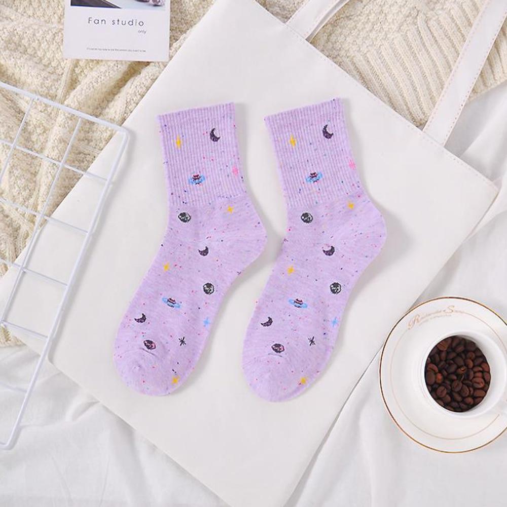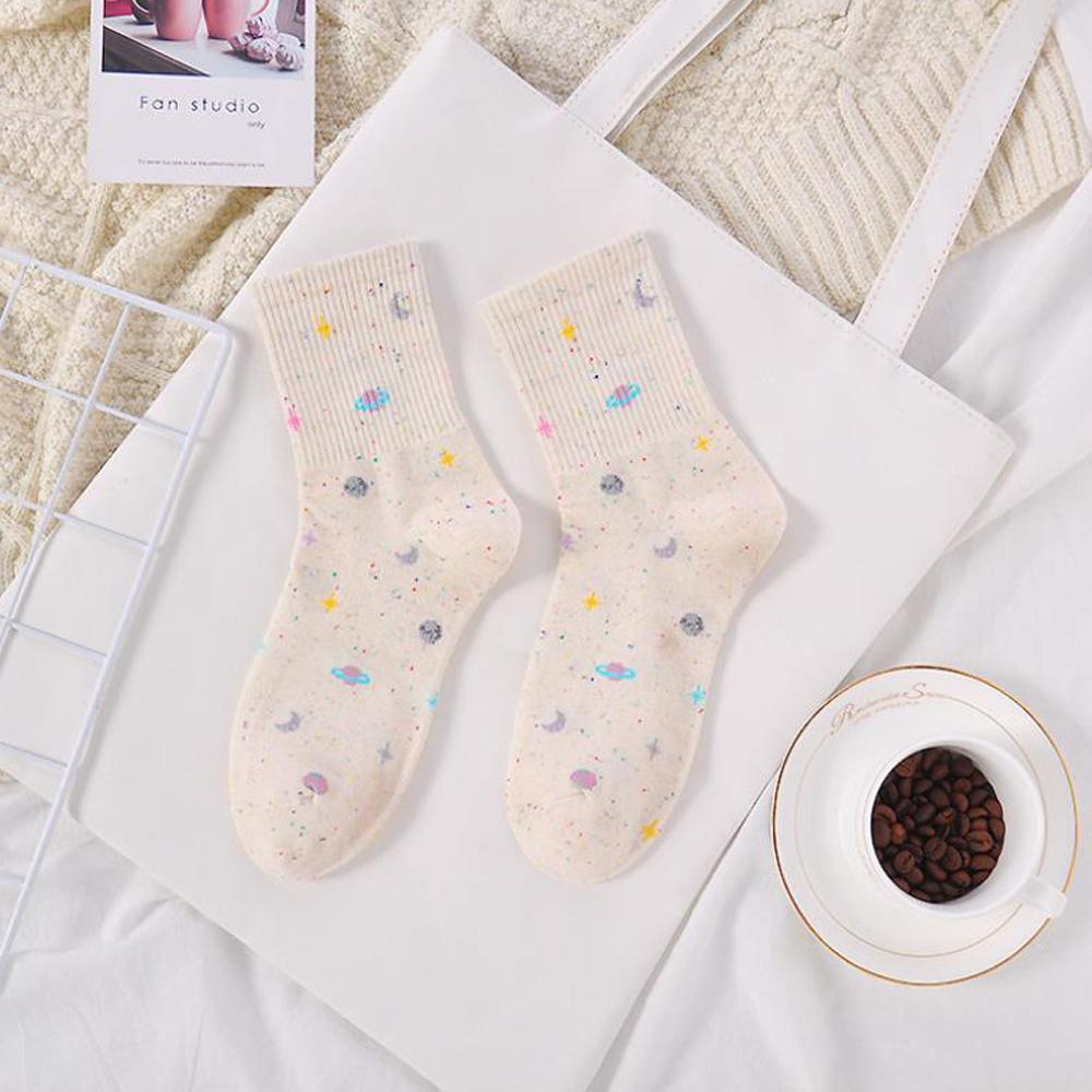 Get lost in the beauty of the universe with these cute galaxy socks. Featuring a stunning print of moons and planets, these socks are perfect for anyone who loves astronomy and space. The vibrant colors and intricate design will add a touch of whimsy to any outfit.