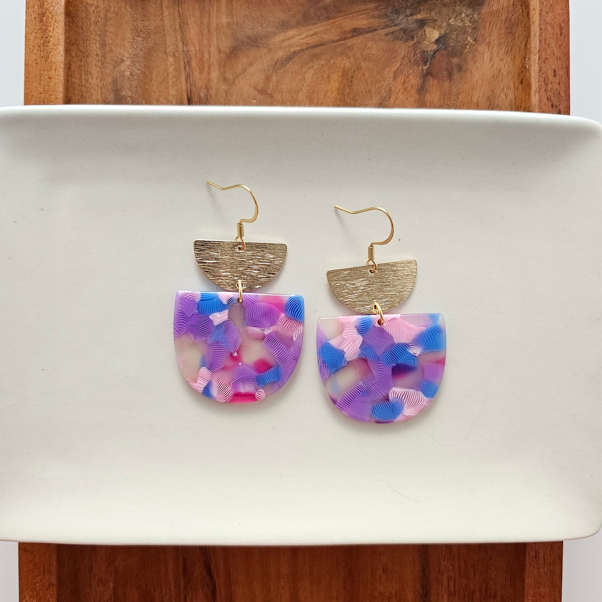Unleash your playful side with our Harper Earrings in Cotton Candy! These statement earrings feature a bold acrylic charm and sparkling gold accents. Stand out from the crowd and add a touch of whimsy to any outfit. Make a statement without saying a word!