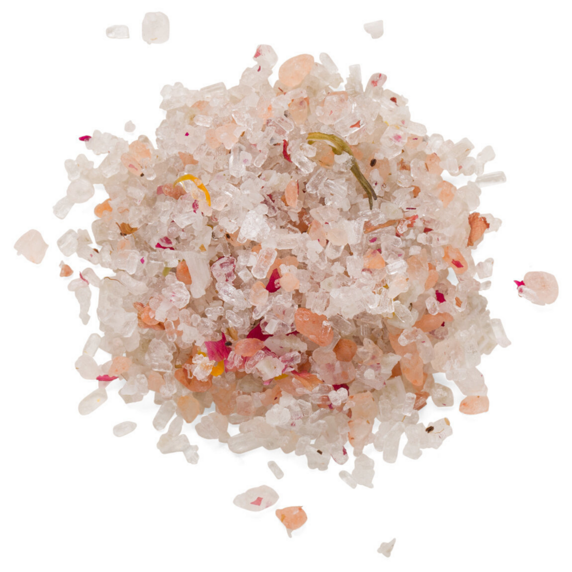 Ingredients: Magnesium Sulfate (Epsom Salt), Sodium Chloride (Sea Salt), Syzygium Aromaticum (Clove) Essential Oil, Citrus Limon (Lemon) Essential Oil, Cinnamomum Verum (Cinnamon) Essential Oil, Eucalyptus Radiata (Eucalyptus) Essential Oil, Rosmarinus Officinalis (Rosemary) Essential Oil, Dried Red Roses, Dried Calendula.