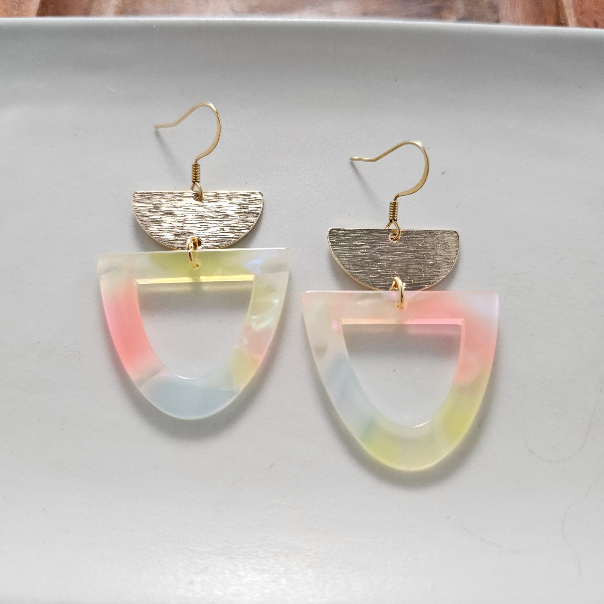Add a pop of color and fun to your outfit with our Irene Earrings! These lightweight statement earrings feature a mix of gold and acrylic charms. Stand out from the crowd and make a playful statement with these eye-catching earrings.