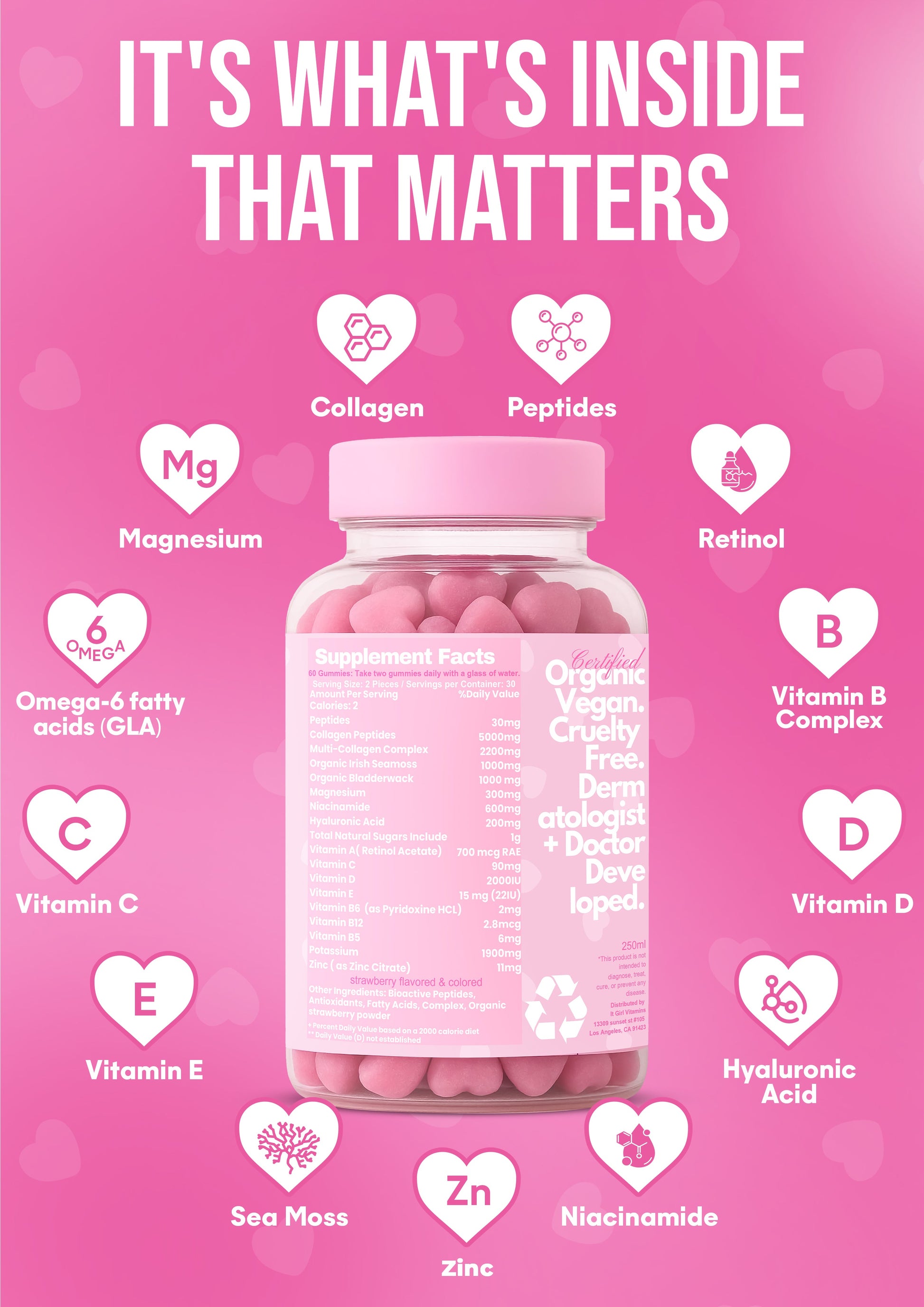 Hybrid Skin Nutrition & Beauty Gummies powered by clinically proven skin superfoods. Formulated to support glowing skin, optimal wellness, holistic health, and premium beauty through advanced longevity science and premium nutraceutical ingredients.