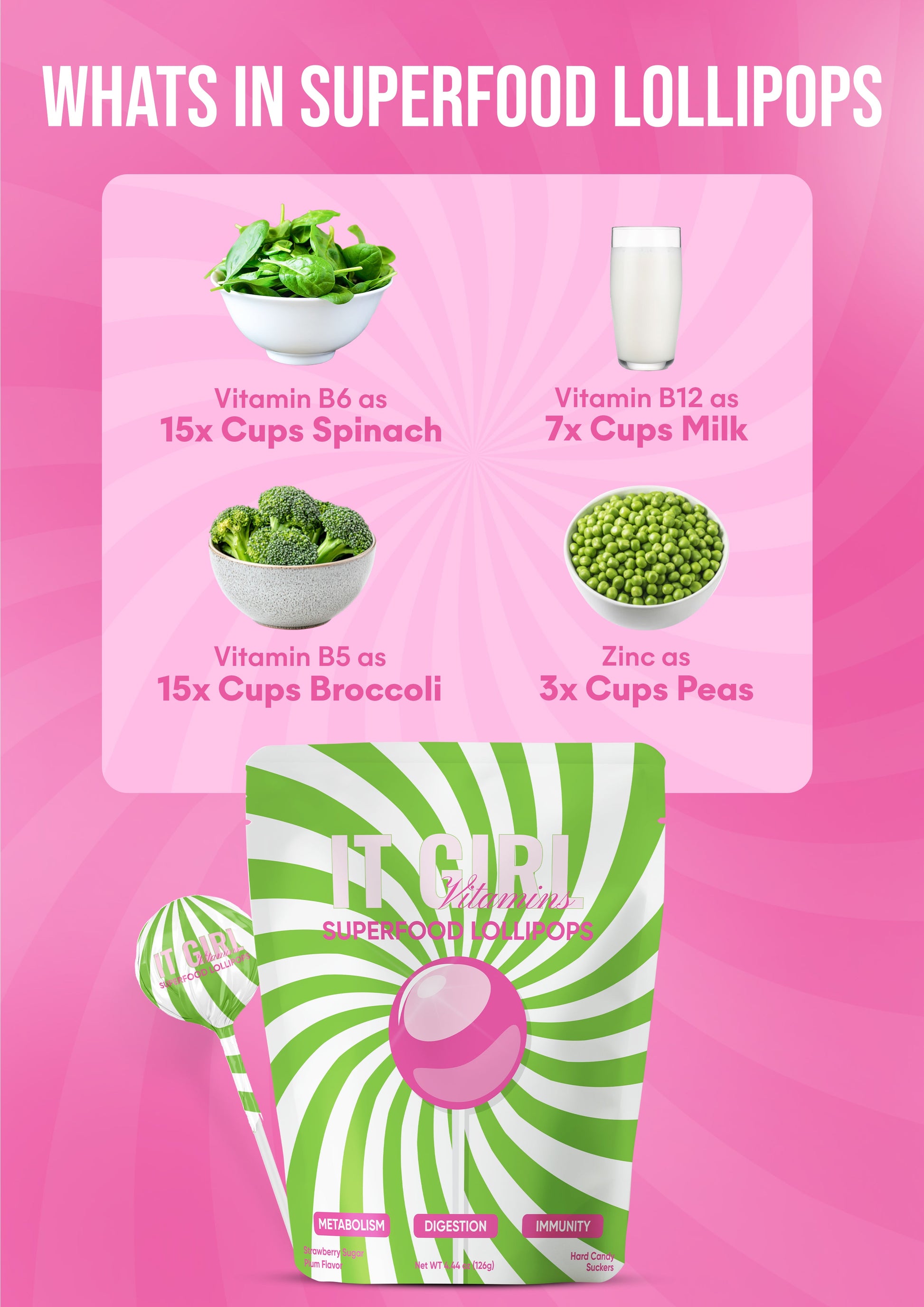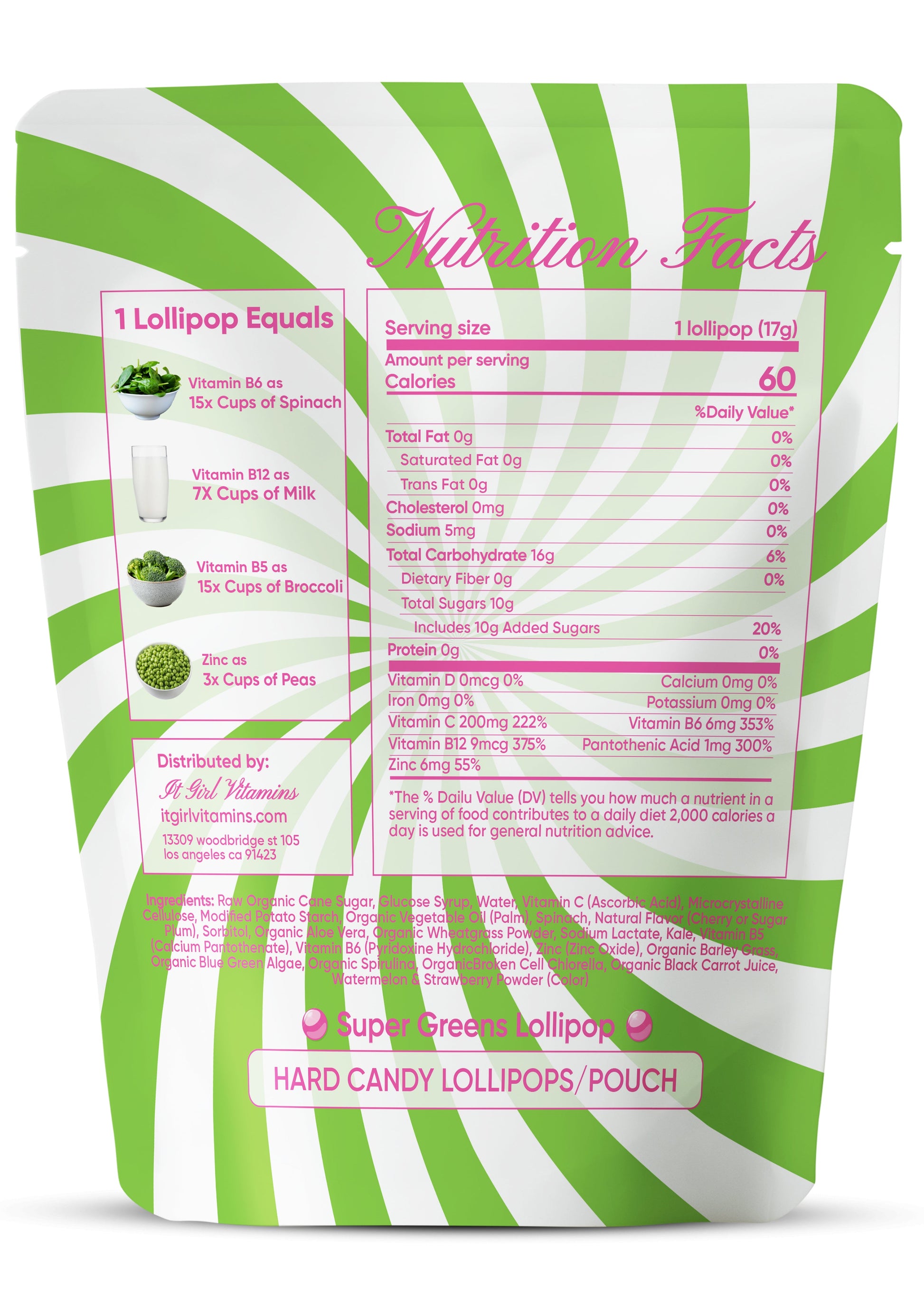 It Girl Superfood Greens Lollipops - Vegan Candy with Supergreens, Vitamins & Antioxidants