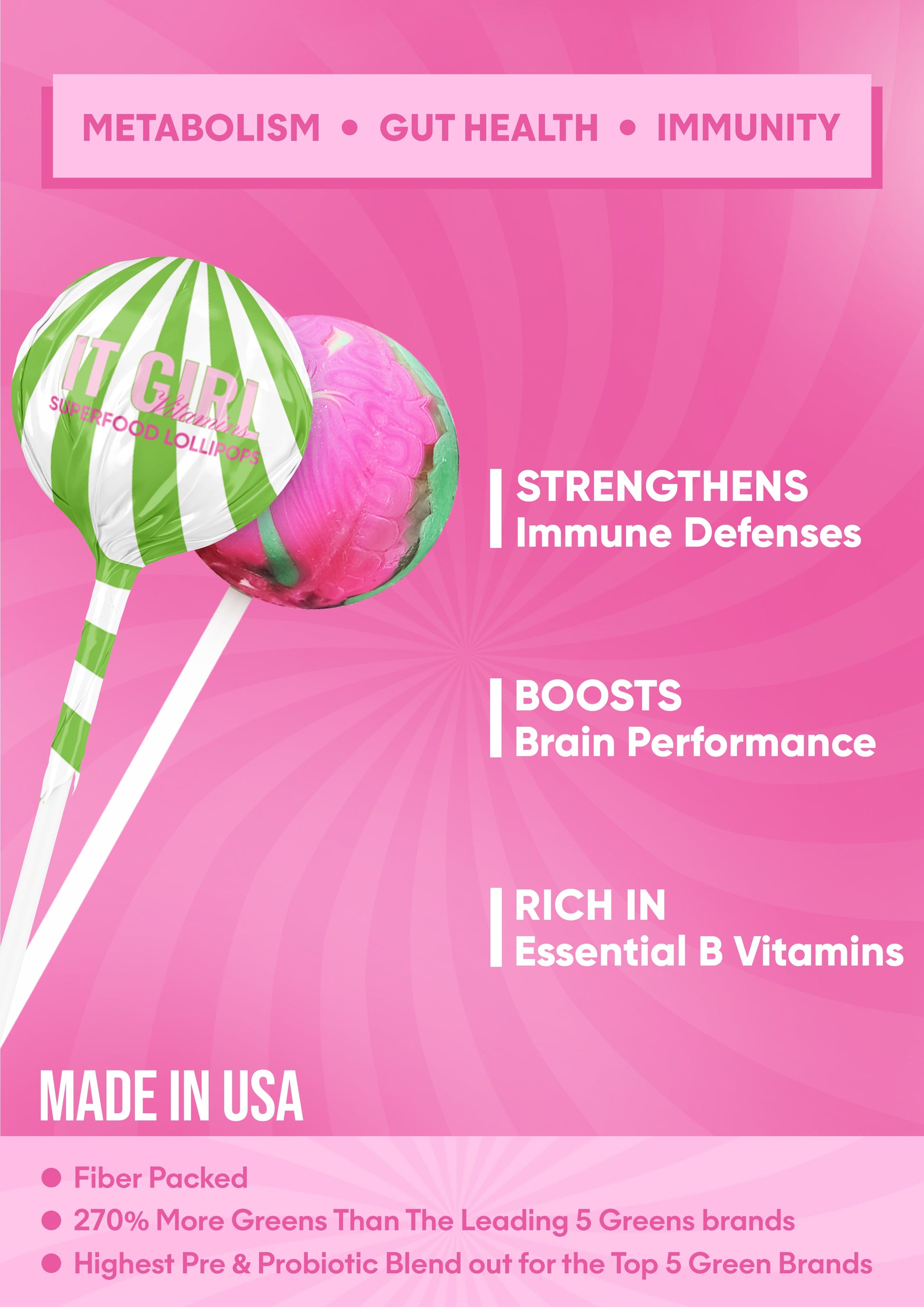 A plant-powered, fun and delicious way to get your greens. It Girl Superfood Greens Lollipops are packed with real greens, essential vitamins, and antioxidant-rich goodness in an organic treat you’ll actually crave.