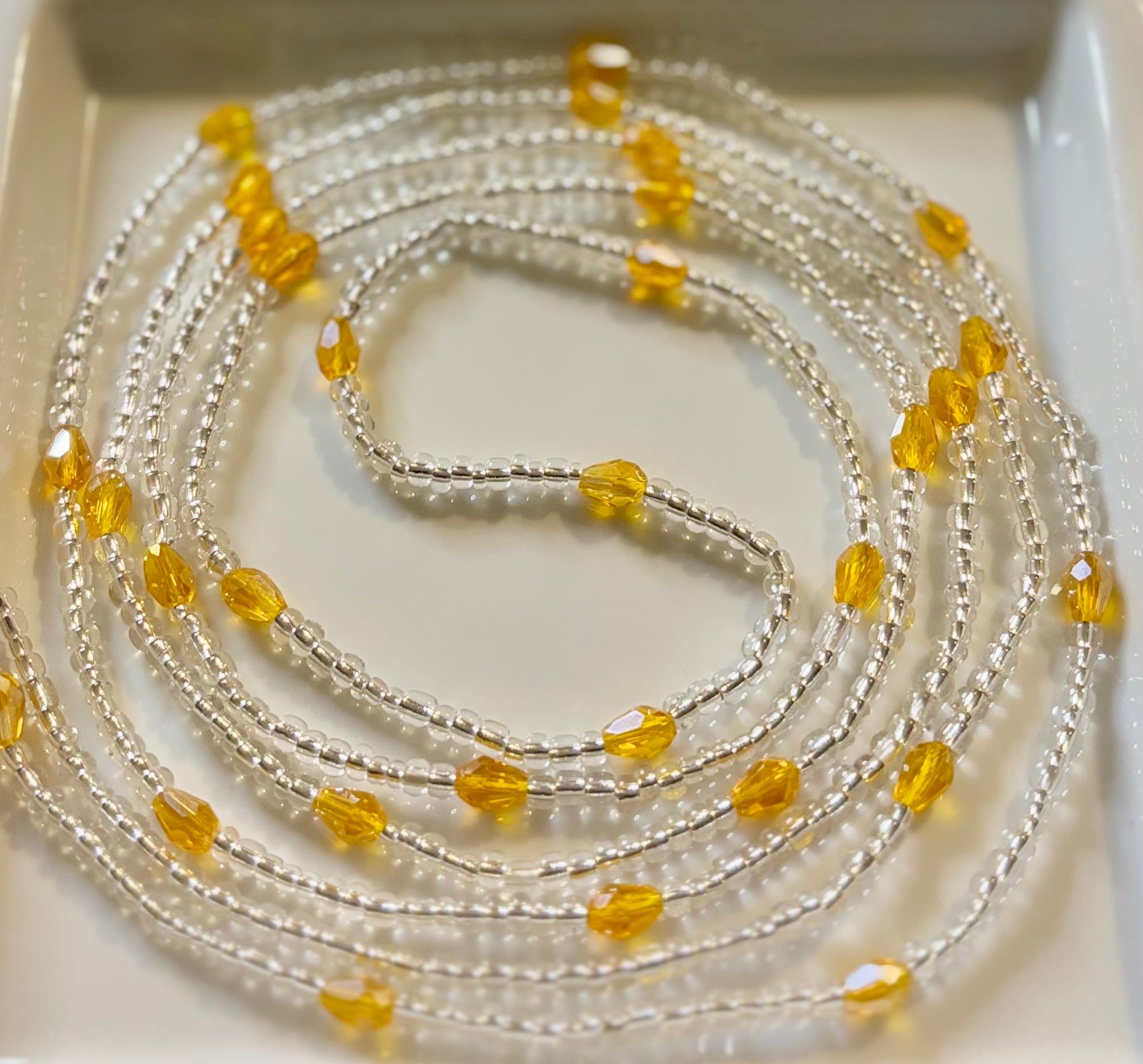 Yellow and silver waist beads are a radiant combination that blends vibrant energy with elegant sophistication.