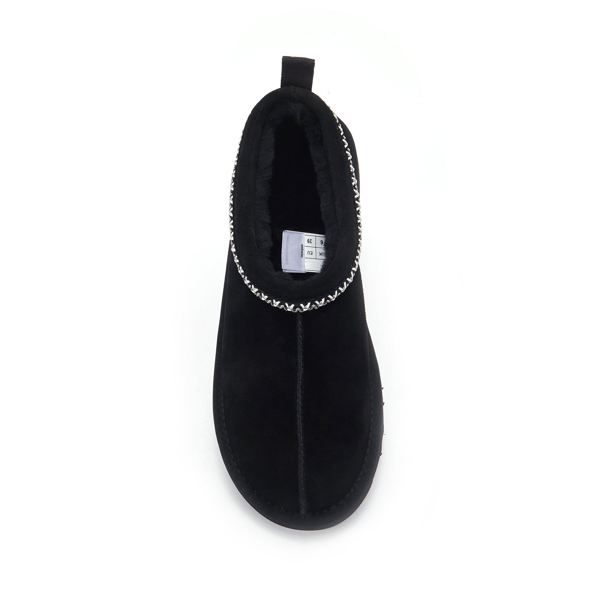 Super cute, mini me version of our Ultra low cut shoe with a rubber sole. Suede outer with contrast braid detail. Lined in super soft pure sheepskin.