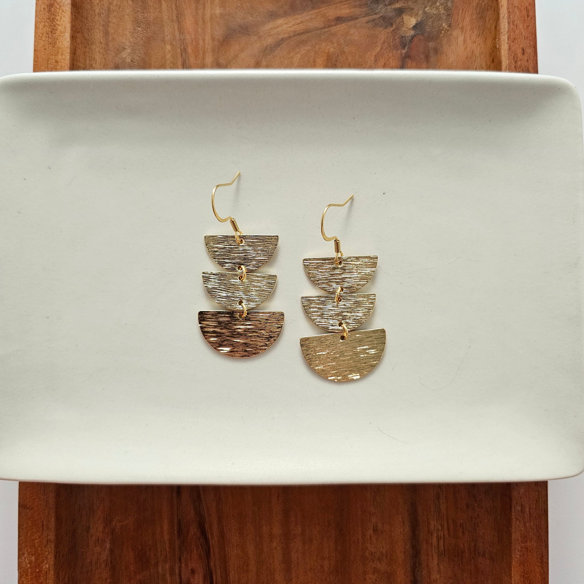 Upgrade your earring game with the Kinsley Earrings in Gold! Featuring a triple tiered design, these statement earrings will add a touch of luxury to any outfit.