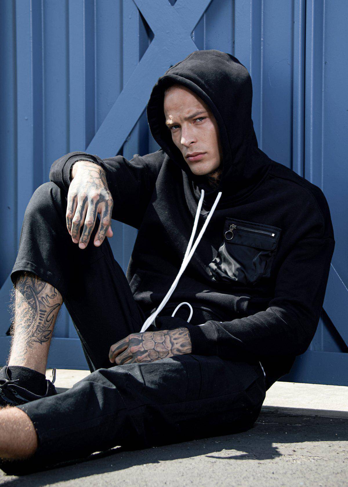 Konus Men's Bellow Pocket Hoodie in Black