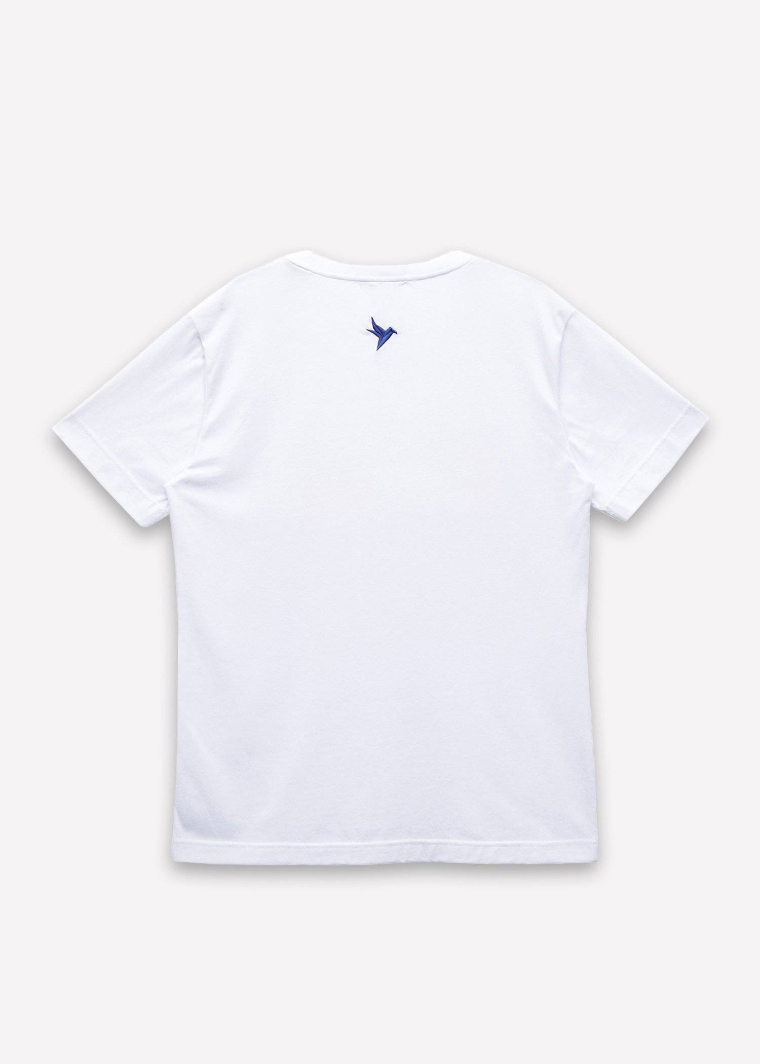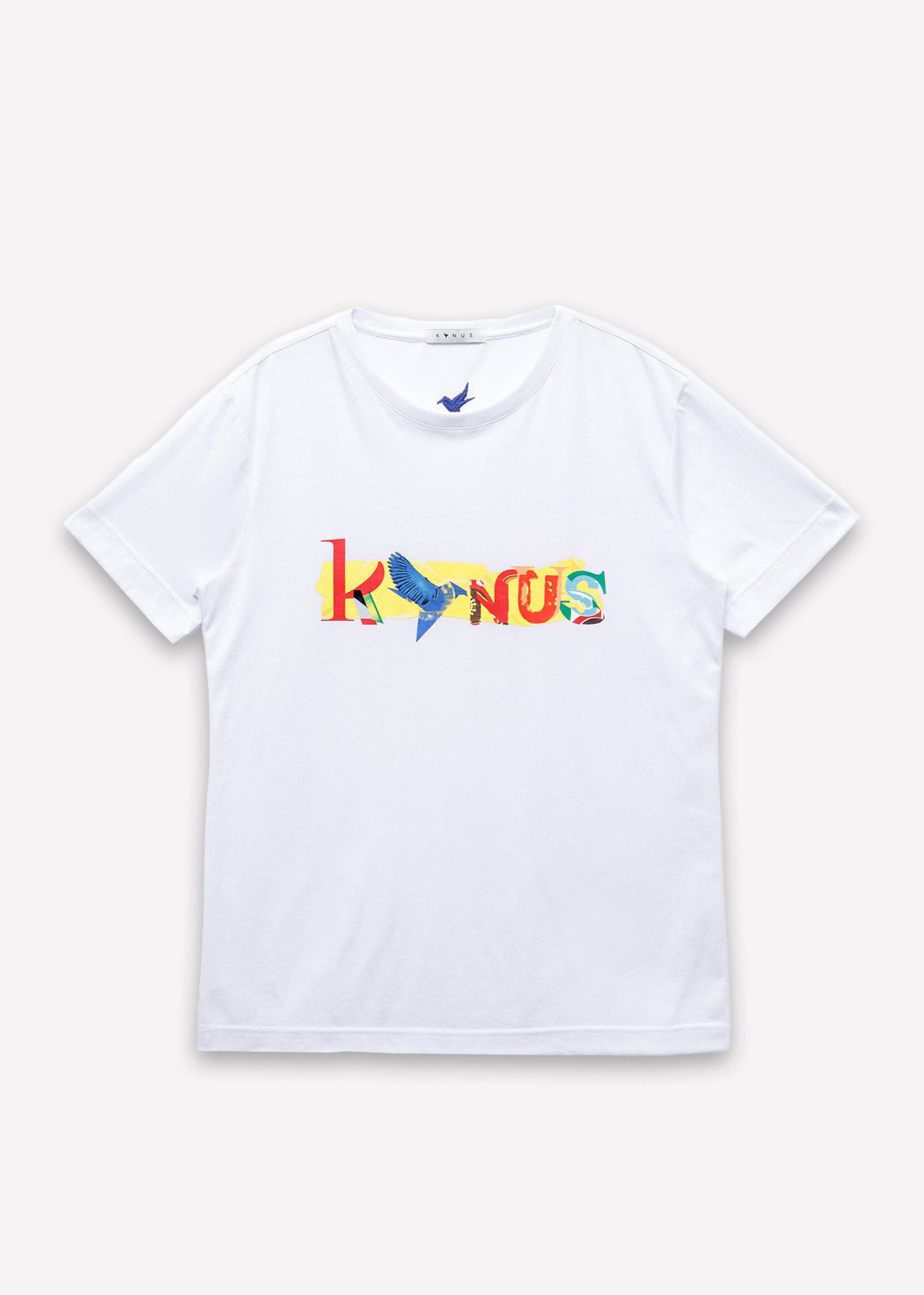Indulge in the refined design of this white, short sleeve crew neck tee adorned with the elegant "KONUS" brand name on the chest and the brand's bird logo embroidered on the back. Elevate your style with this premium piece.