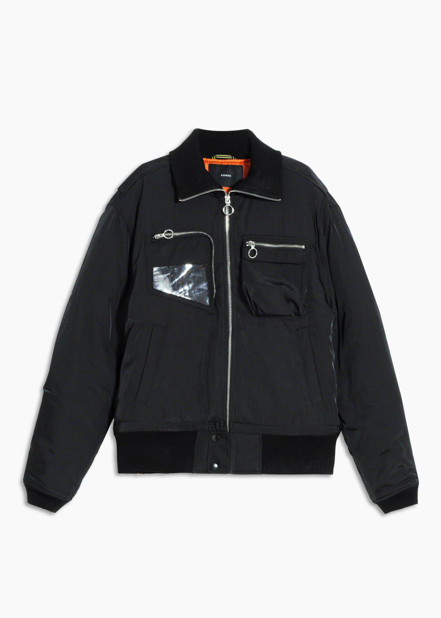Konus Men's Mock Collar Bomber Jacket in Black