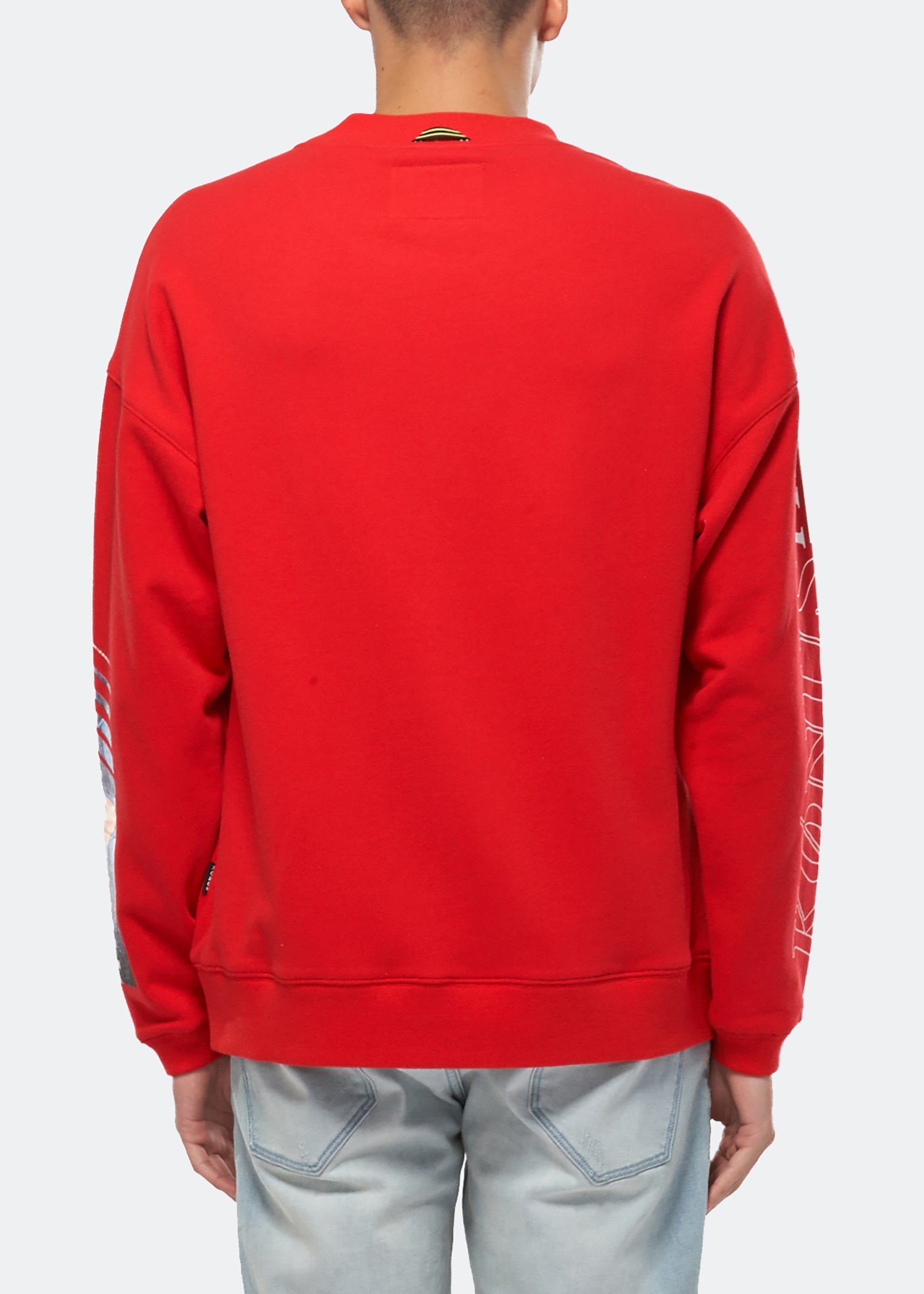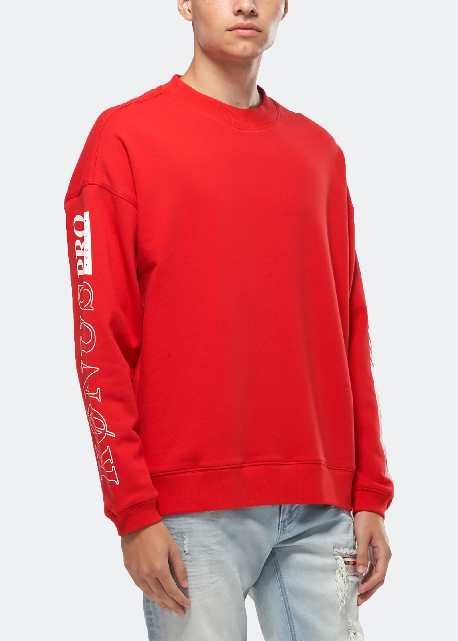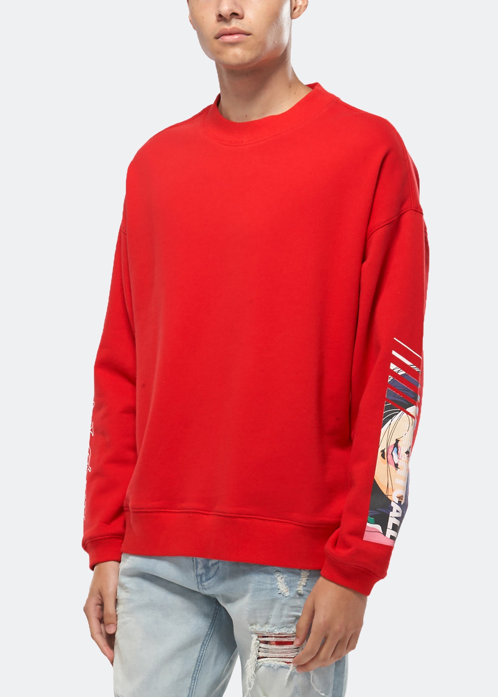 Oversized French terry sweatshirt featuring screen-printed designs on the sleeves.