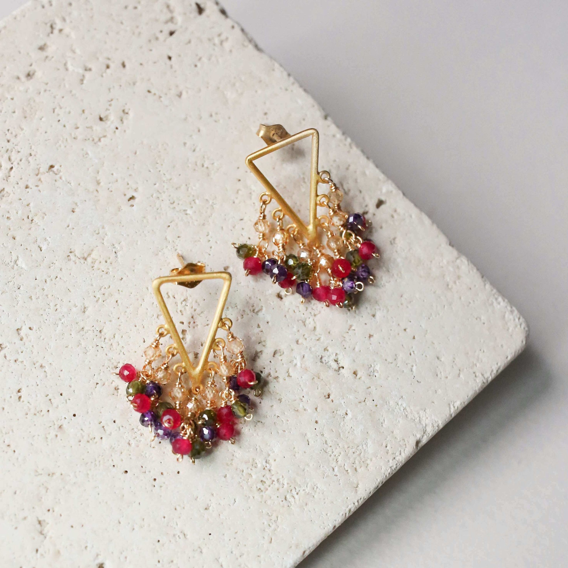 We've made fringe even better by adding a little sparkle. In this case, some sparkling labradorite gems for a sophisticated and unique earring that you can wear to work and then straight to your Friday night cocktail party. Measuring about 1.25" long and handmade with our signature 14k gold plated over .925 Italian silver, these post back earrings will arrive in our exclusive gift packaging.