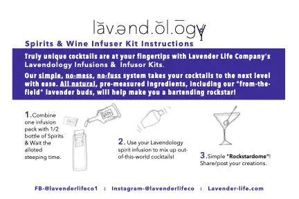 Our simple, no-mess, no-fuss system takes your cocktails to the next level with ease. All-natural, pre-measured ingredients, including our "farm-to-field" lavender buds, will help make you a bartending rockstar. 1 Infusion packet makes 6 plus cocktails.