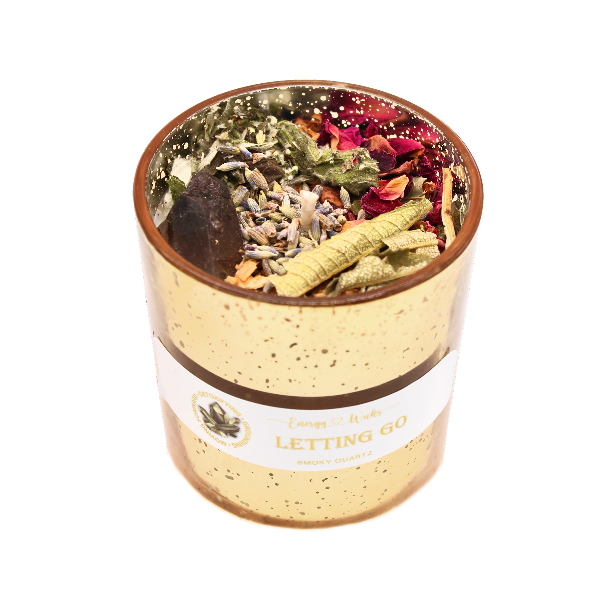 This smoky quartz crystal candle is designed to help break away from negative patterns and habits to pursue a desired life. Its purpose is to serve as a reminder of the power of intention, aiding one to let go of past behaviors that no longer serve them.