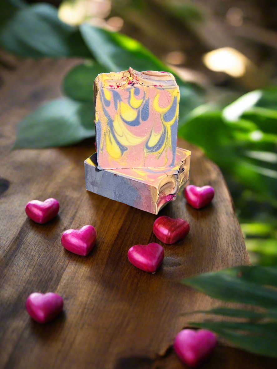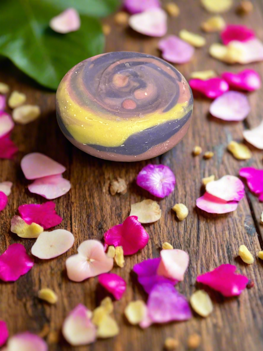 Fall under the spell of this enchanting blend. Love Spell is a luxuriously creamy goat milk soap infused with a captivating mix of peach, apple blossom, and coconut milk, delicately layered with jasmine and hydrangea blossoms.