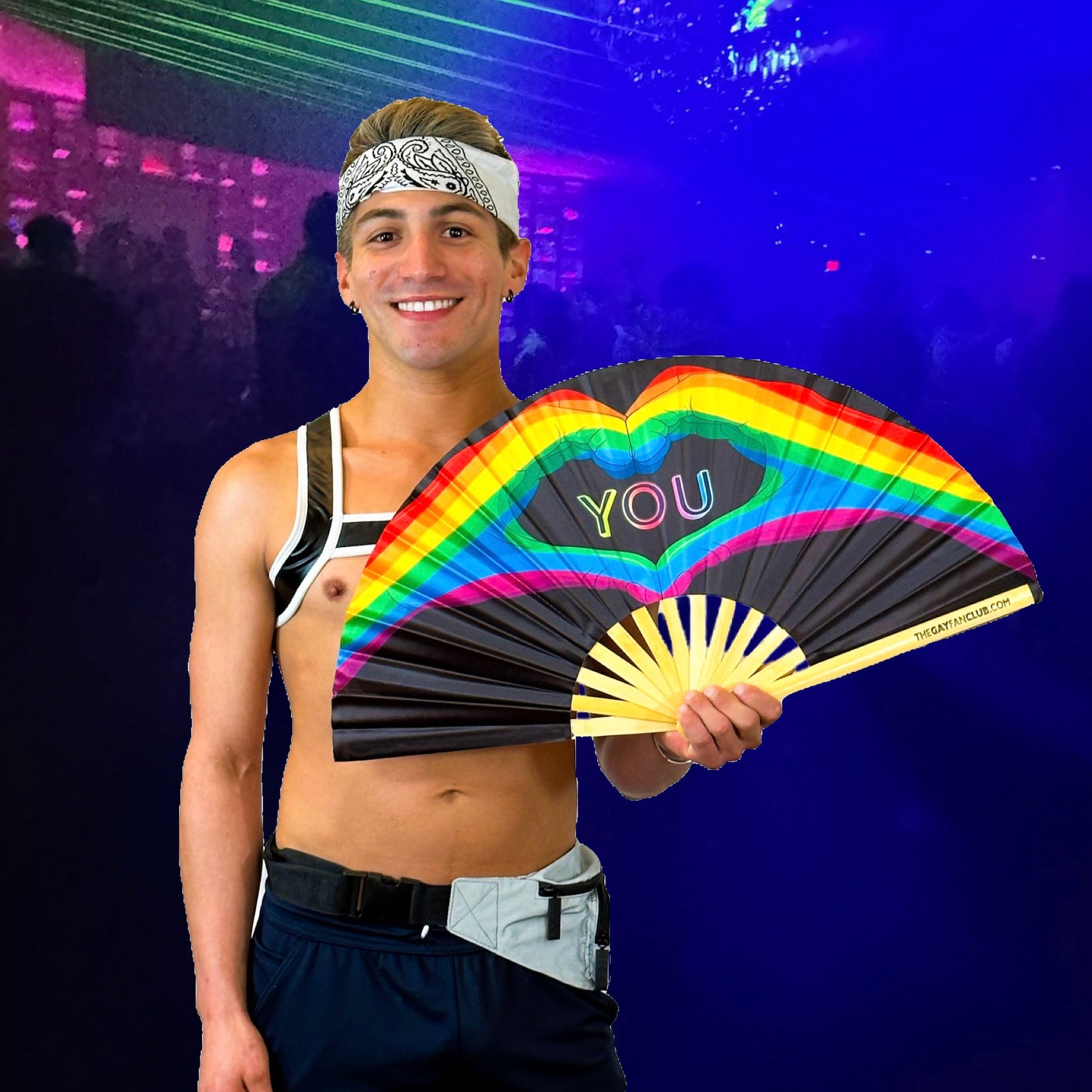 Loud hand fan perfect for Pride festivals, parties, and heartfelt moments